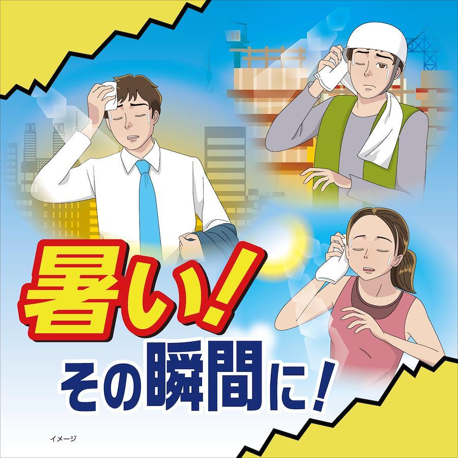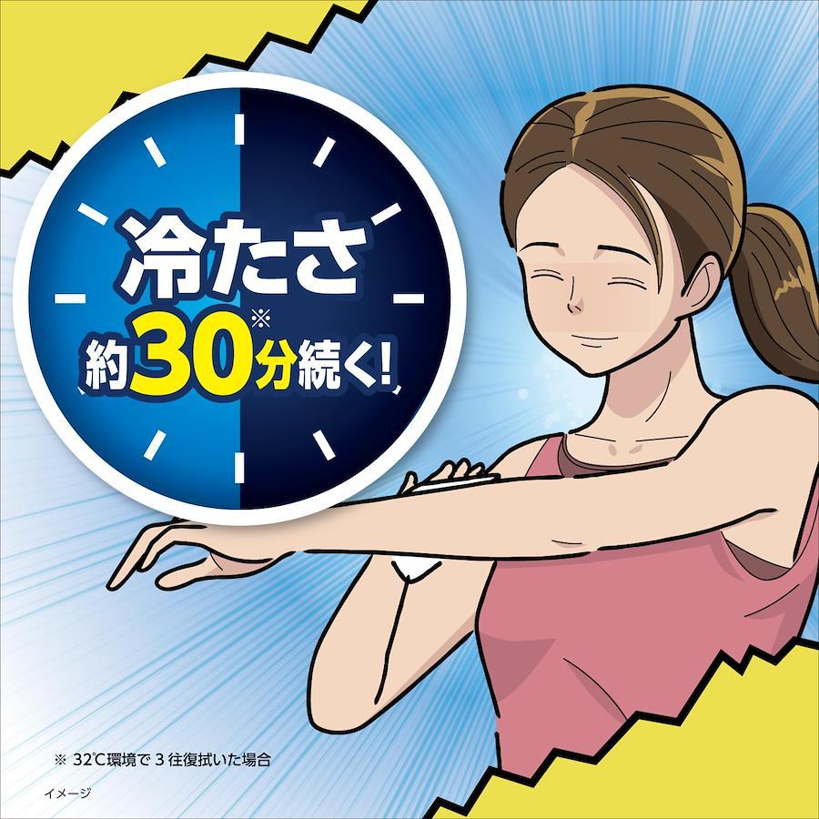 驚き実感!最大濃度の冷感成分を配合。冷たさ約30分続く!※32度環境で3往復ふいた場合。