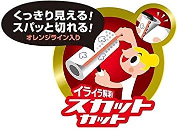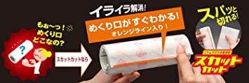 「スカットカット」オレンジライン入りでめくり口がすぐわかり、カンタンにめくれてスパッと切れます。長い毛が巻きついても紙がたてにやぶれません。