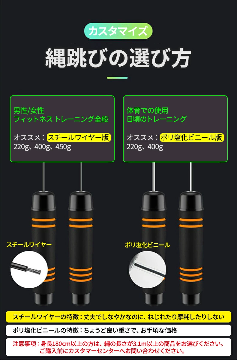 商品情報 カラー ◇ブラック ◇オレンジ ◇グリーン ◇ブルー モニターの発色の具合によって実際のものと色が異なる場合があります ※北海道・沖縄・離島などは送料が別途必要となります。 ご購入後にご連絡を差し上げます。ご了承の上ご検討ください。 サイズ ◇ロープの長さ--約2.8m ◇グリップの長さ--約16cm/幅3.5cm ※長さ調整可能です。商品ページご参考ください。 素材 ポリプロピレン・ウレタン ポリ塩化ビニールスチールワイヤー 商品詳細 ◇丈夫なスチールワイヤーで、耐久性バツグン!ねじれにくくもなっています! ◇握りやすく、汗でべたつきにくいグリップ! ◇ウェイトの出し入れができ、運動量の調整が可能! 検索キーワード 縄跳び 学校 用 子供用 子供 なわとび 大人用 トレーニング用 ダイエット ロープ おすすめ キッズ クーポン有 クーポンを取得する クーポン対象! クーポンが使える店 1000円 おすすめ