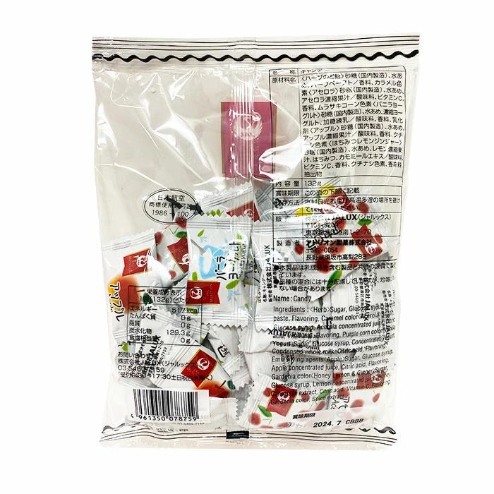 アセロラ、ハーブのど飴、バニラヨーグルト、レモンジンジャー、アップルの5種。