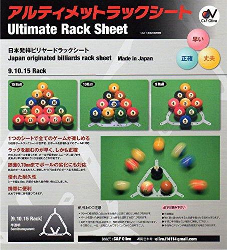 Ultimate Rack Sheetアルティメットラックシート9.10.15 Rack日本発祥ビリヤードラックシート1つのシートですべてのゲームが楽しめる15個用ボールラックシートは世界初、全ボールを密着し全てのゲームに対応。ラックを組むのが早く、しかも正確穴の上にボールを置くため、ボールが固定されスムーズに並びます。従来よりも早く確実にラックを組むことが可能です。誤差0.70mmまでボールの劣化にも対応新品のボールはもちろん、摩耗した-0.70mmまでのボールにも対応します。携帯に便利丸めて手軽に持ち運びできます。※撮影時の照明や生産ロットの違いで、画像とは色合い等が異なる場合がございます事を、予めご了承下さい。※この商品は日本国外への販売はできませんThis product cannot be sold overseas.