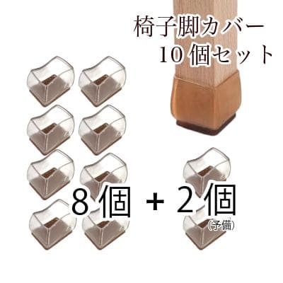 【フェルト付き 椅子脚カバー 10個セット(8個+予備2個)】透明 フットカバー 直径4〜5cm対応 角脚/丸脚対応 床キズ防止 防音 防振 脱げにくい イス脚キャップ