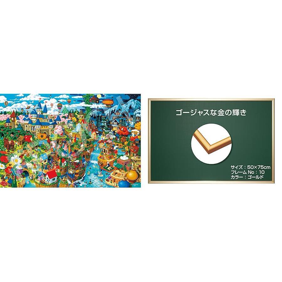 【フレーム・パズルセット買い】【 限定】エポック社 【日本製】 アルミ製 パズルフレーム パネルマックスプラス ゴールド (50×75cm) バックボード2枚入り+エポック社 1000ピース ジグソーパズル イラスト/アート 秋山正義 探して! 世界のおとぎ話 (50×75cm) 12-602s EPOCH