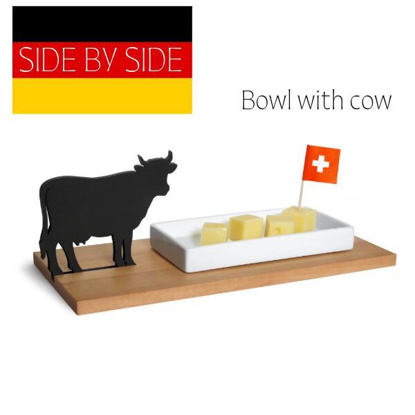 SIDE BY SIDE/サイドバイサイド/Bowl with cow/ボウル ウィズ カウ/チーズトレイ/チーズボード/ウッドトレイ/陶器ボウル/デザイン雑貨/ドイツ製 雑貨/ギフト インテリア雑貨/テーブルコーディネート/おしゃれ キッチン雑貨/プレゼント/ギフト対応/正規品