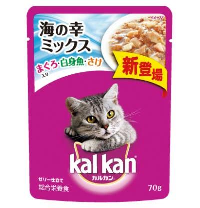 本製品1袋とドライ製品を混ぜて与えた場合の1日の給与量の目安(カルカンドライまぐろと野菜味の場合)体重2kg:ドライ25g、体重3kg:ドライ40g、体重4kg:ドライ50g、体重5kg:ドライ60g、体重6kg:ドライ70g、体重7kg:ドライ80g