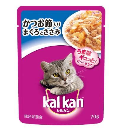 本製品1袋とドライ製品を混ぜて与えた場合の1日の給与量の目安(カルカンドライまぐろと野菜味の場合)体重2kg:ドライ25g、体重3kg:ドライ40g、体重4kg:ドライ50g、体重5kg:ドライ60g、体重6kg:ドライ70g、体重7kg:ドライ80g