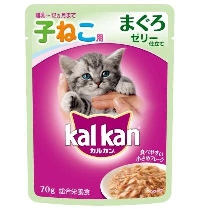 本製品1袋とドライ製品を混ぜて与えた場合の1日の給与量の目安(カルカンドライ子ねこ用の場合)生後4-8週間体重0.8kg:ドライ35g、生後-12週間体重1.2kg:ドライ45g、生後-16週間体重1.8kg:ドライ55g、生後-32週間体重3.1kg:ドライ65g、生後-52週間体重3.5kg:ドライ40g