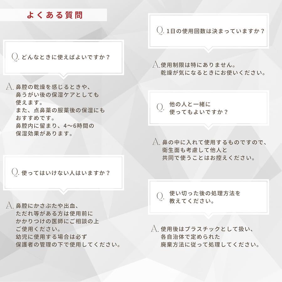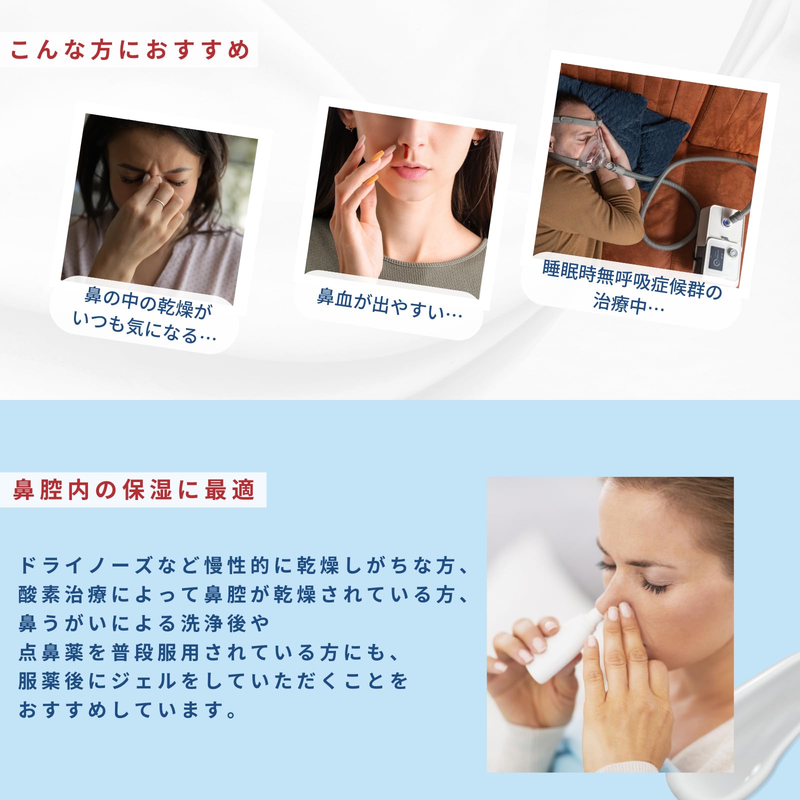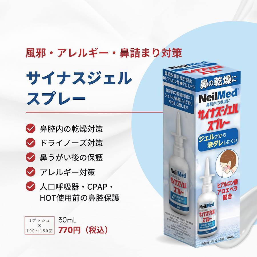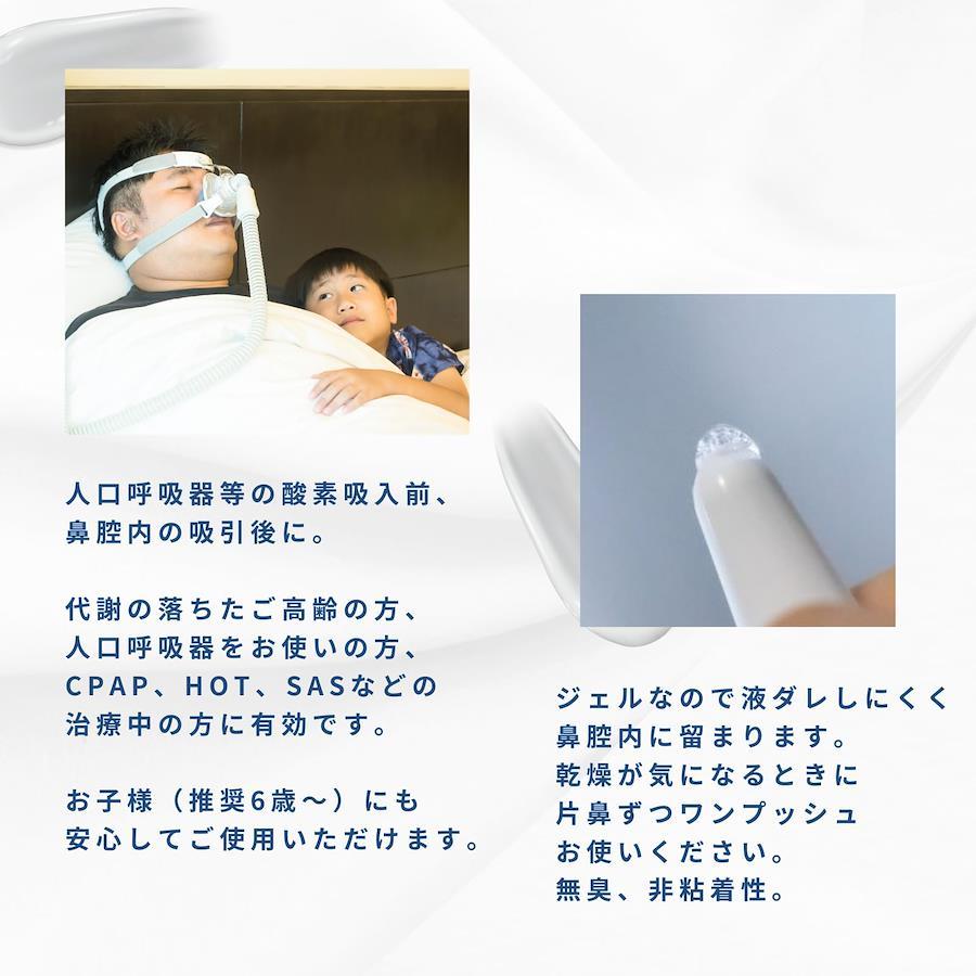 ヒアルロン酸、アロエベラ入りのジェル状スプレーで、鼻の中を潤します。 CPAP(酸素吸引器)を使う前にも有効です。 http:/