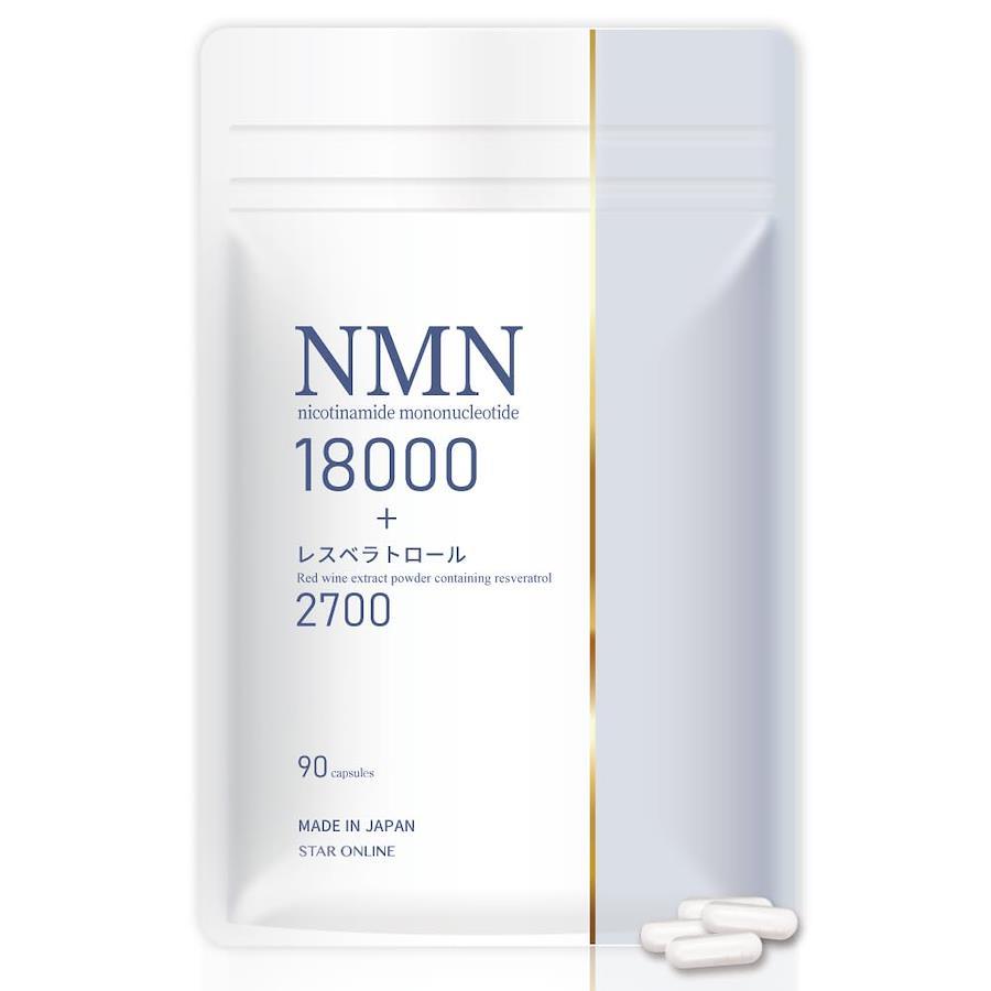 ■サイズ:??17x11x1.8cm;40g 【業界トップクラスの含有量&配合!】 STAR ONLINE「NMNサプリメント」は、NMN(ニコチンアミドモノヌクレオチド)の配合量が、業界トップクラスの「18000mg」と高配合。 業界トップクラスの純度99.4%以上(真正試験済み)のNMNを使用。 【腸まで届く植物性耐酸性カプセル】 科学的に安定した、植物性のカプセルを採用。NMNは唾液や水で純度が落ちますが、胃酸に負けない耐酸性カプセルなら高純度のまましっかり吸収します。 【厳選成分を高配合】 NMNと相性がいいとされる、レスベラトロールをたっぷり2,700mg配合しています。 【20種の美容サポート成分】 コエンザイムQ10、ザクロエキス、ユーグレナ、ビタミンB1、ビタミンC、アスタキサンチン、大豆イソフラボン、プラセンタ、コラーゲン、ヒアルロン酸、クロレラ、ローヤルゼリーFD末、エキナセアエキス末、ノニ果実エキス末、セルロース、リコピン、酸化マグネシウム、ルチン、エラスチン、コーンセラミドを配合し、お肌の調子を整えるサポートをします。 【安心の安全管理/国内製造】 大切なお客様に安全な商品を届けるために、国内GMP認定工場で製造しております。 また、企画、製造、品質管理、販売まですべて日本国内で行っております。 ■重要なお知らせ原材料・成分β-ニコチンアミドモノヌクレオチド(国内製造)、レスベラトロール含有赤ワインエキス末、クロレラ原末、ローヤルゼリー末、ユーグレナ、エキナケアエキス末(エキナケアエキス、デキストリン)、ノニエキス末、コエンザイムQ10、大豆イソフラボン末、豚コラーゲンペプチド(ゼラチン含む)、エラスチン(魚由来)、とうもろこしエキス末(セラミド含有)(デキストリン、とうもろこしエキス)、ザクロエキス末、豚プラセンタエキス末/セルロース、HPMC、ステアリン酸カルシウム、ビタミンB1、トマト色素、酸化マグネシウム、ビタミンC、ルチン、ヒアルロン酸、加工デンプン、ヘマトコッカス藻色素、シクロデキストリン、微粒酸化ケイ素、酸化防止剤(ビタミンE)