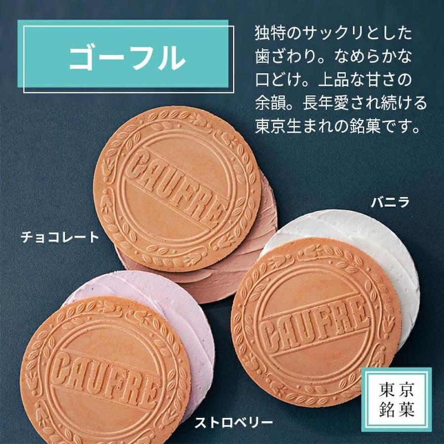 3営業日以内に発送≪新品未開封品≫直径15cmほどの丸いウエハースの間に、バニラ、ストロベリー、チョコレート風味クリームの6種類をそれぞれサンドし、詰め合わせました。 さっくりと軽い口あたりのウエハースとのコンビネーションで長年皆様に親しまれている上野風月堂の伝統菓子です。【商品名】ゴーフル 12枚入×2缶 【内容量】12枚入×2缶【箱のサイズ】L175×W350×H113mm(外箱) 【商品重量】1370g【特定原材料】(7品目)小麦、卵、乳成分 【保存方法】直射日光、高温多湿な場所を避けて下さい。 【メーカー】上野風月堂【商品についてのお知らせ】お品物は包装されたものをお届けいたします。のし、手提げ袋は承れませんのでご容赦ください。【重要】メーカーによる商品リニューアルに伴いパッケージ(内容量も含む)変更が行われた場合、新パッケージでお届け致します事ご了承願います。