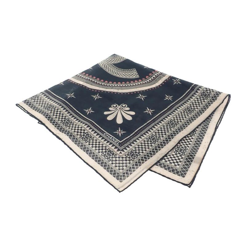 【中古】シャネル CHANEL ココマーク スカーフ コットン ネイビー ピンク レディース【Aランク】