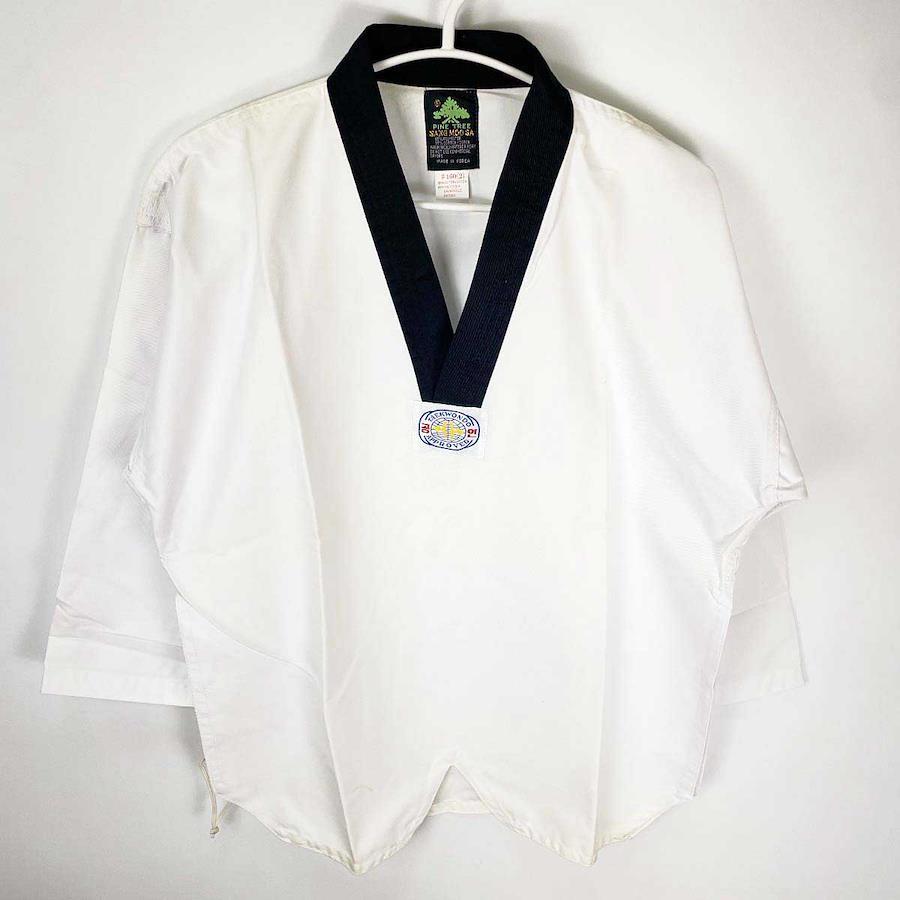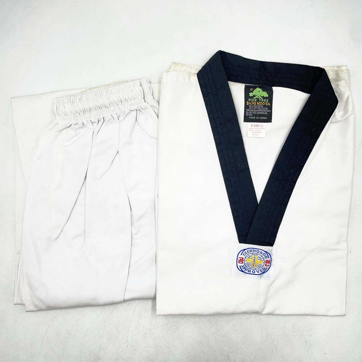 [タイプ] PINE TREE SANG MOOSA Taekwond APPROVED テコンドー 道着[表記サイズ] 160[身幅] 約57cm[着丈] 約69cm[総丈] 約93cm[ウエスト] 約24cm[状態] 未使用長期保管品(保管に伴いある程度の汚れがみられます。)