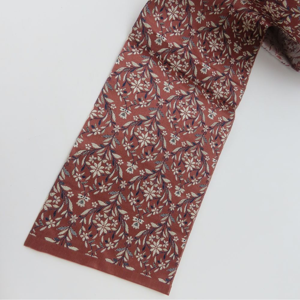 | 品名 | 【中古】 名古屋帯 八寸 正絹(金銀糸除く) あずき色 ピンクブラウン系 ホワイト ネイビー 松葉仕立て カジュアル レディース 女性 |