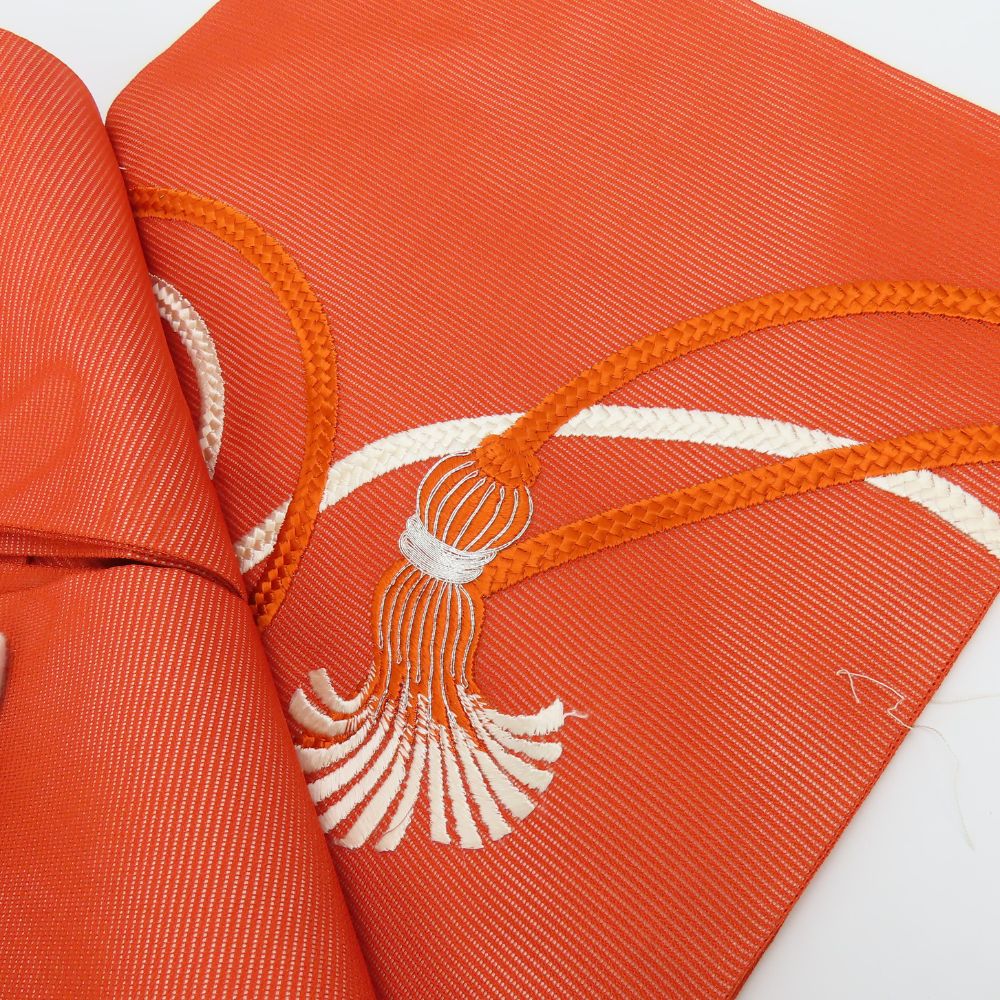| 品名 | 【中古】 名古屋帯 絽 九寸 化学繊維 オレンジ系 ホワイト シルバー 名古屋仕立て 刺繍 しつけ糸あり レディース 女性 |