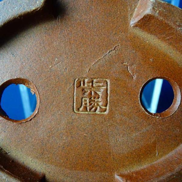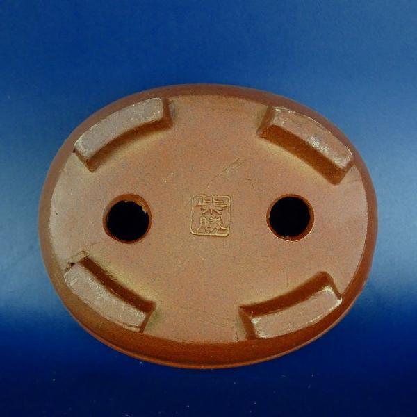 【中古】盆栽鉢 常滑 柴勝 小鉢 長辺 約8cm 楕円鉢 外縁 泥物 現品 中古鉢