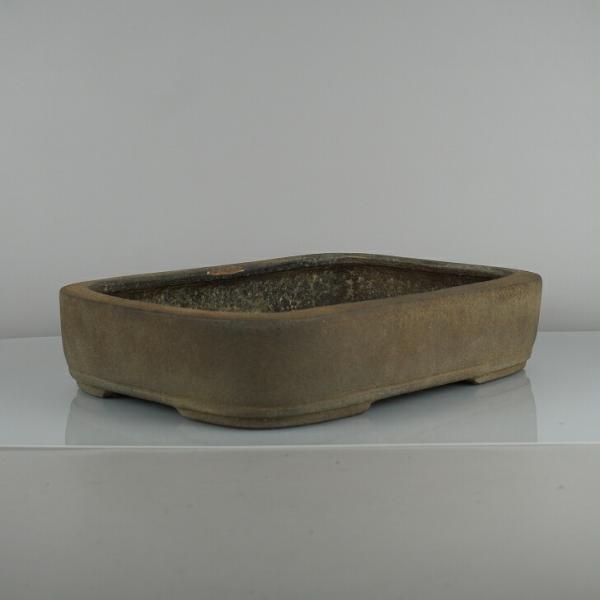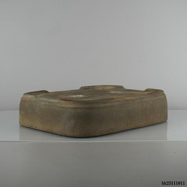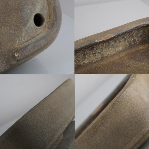 【中古】盆栽鉢 常滑 秀峰 義村陶園 中型 長辺 約 33.5cm 長方鉢 撫角 下帯 泥物 和鉢 現品 中古鉢