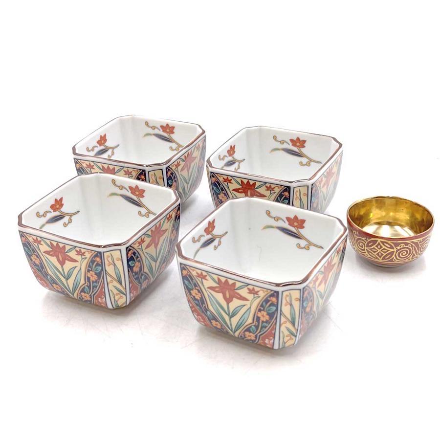 [タイプ] 龍峰窯 小鉢 4点 九谷焼 九谷 盃 おちょこ[サイズ] 小鉢 約7cm×約7cm×高さ約5cm、おちょこ 直径約4.8cm×高さ約2.7cm[状態] 小鉢は目立った傷みはありませんが、汚れがみられます。おちょこはキズや汚れがみられます。