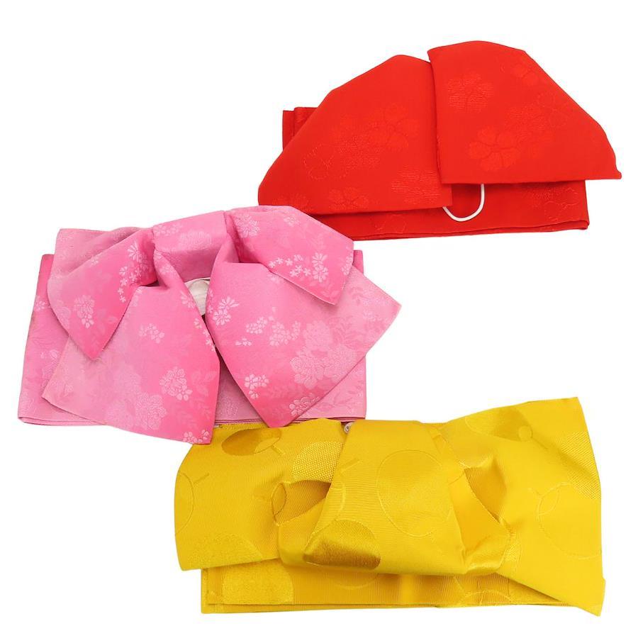 | 品名 | 【中古】 その他帯 造り帯 まとめ売り 単色 ポリエステル ピンク イエロー レッド 3点セット リボン 変わり結び |