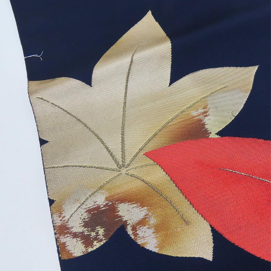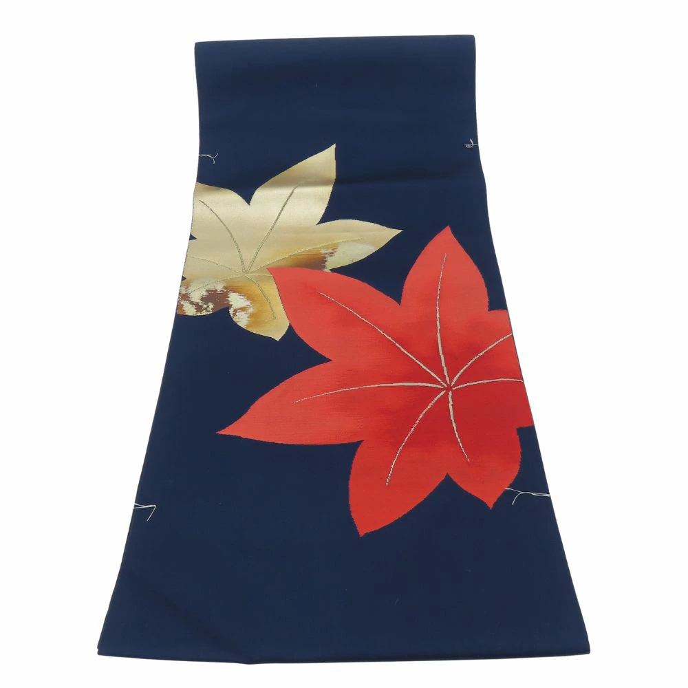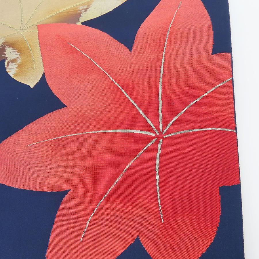 | 品名 | 【中古】 名古屋帯 しつけ糸あり 化学繊維 ネイビー 紅葉柄 お洒落 レディース 女性 |