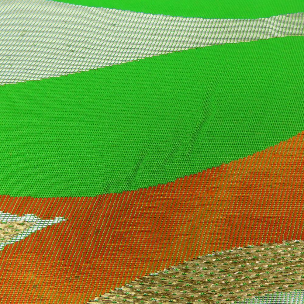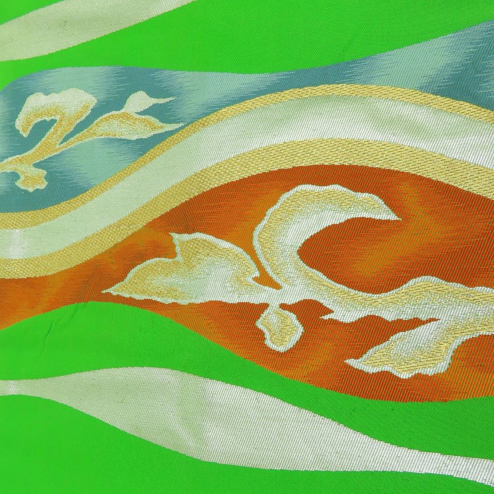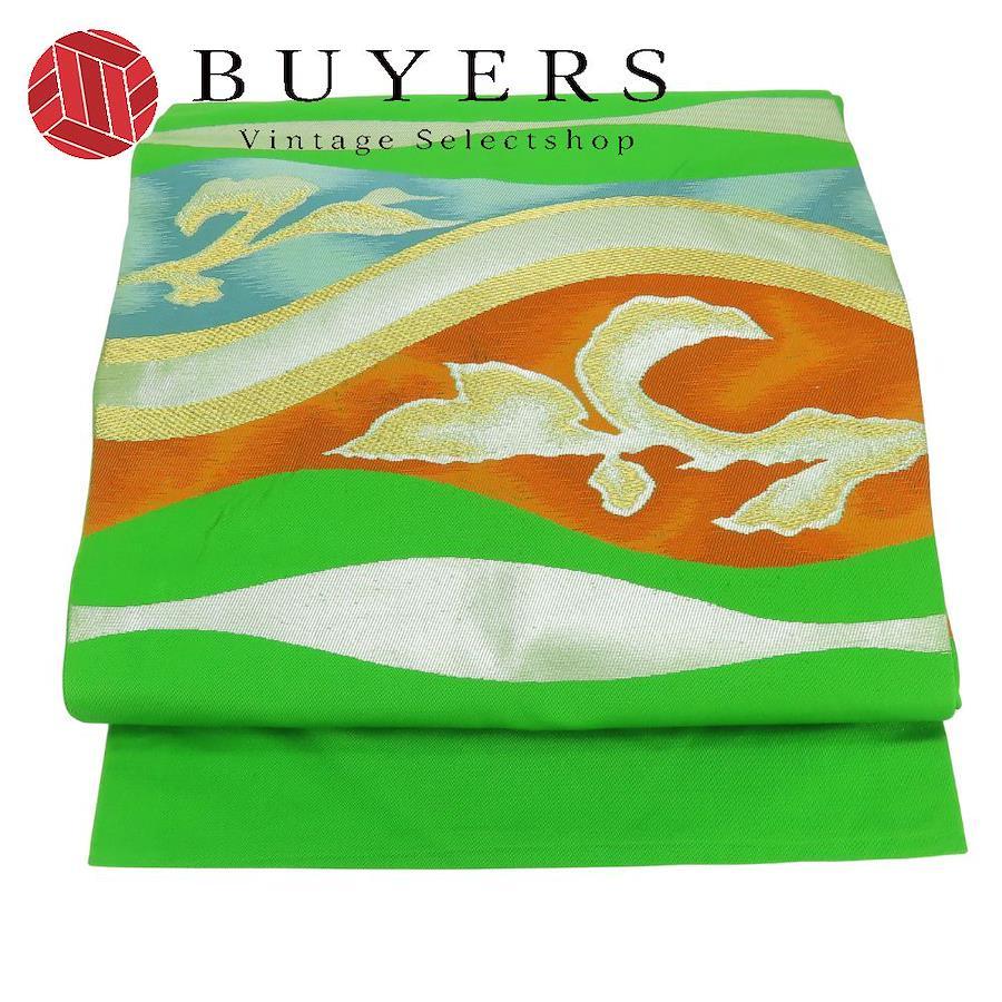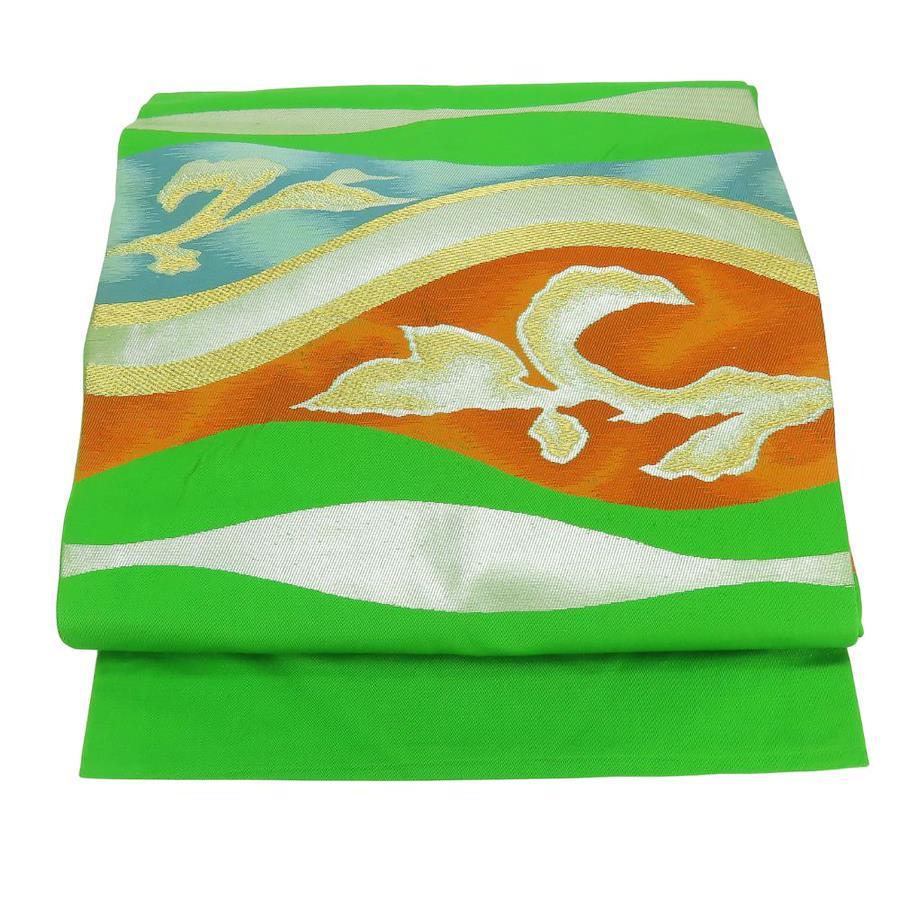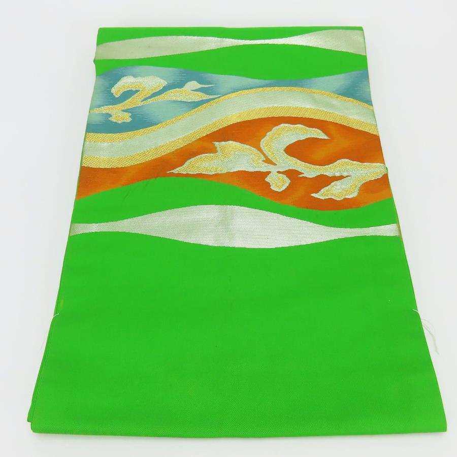 | 品名 | 【中古】 名古屋帯 九寸 しつけ糸あり 正絹(金銀糸除く) グリーン マルチカラー 名古屋仕立て セミフォーマル お洒落 レディース 女性 |