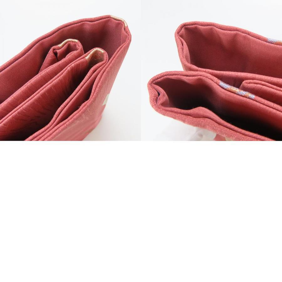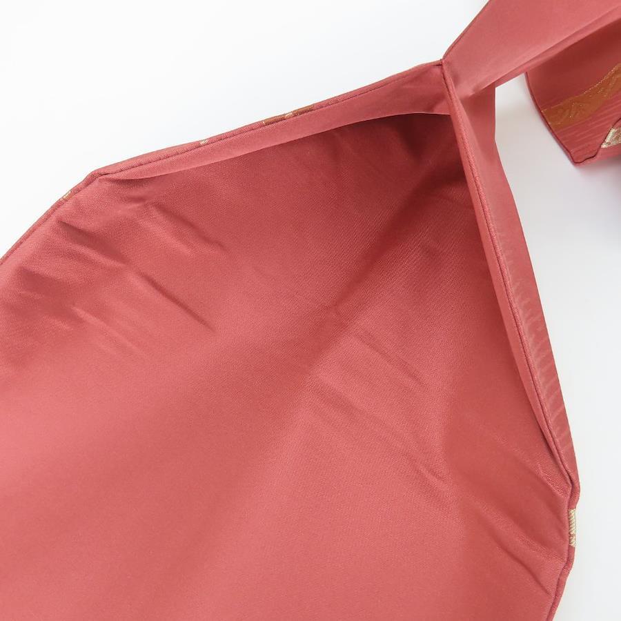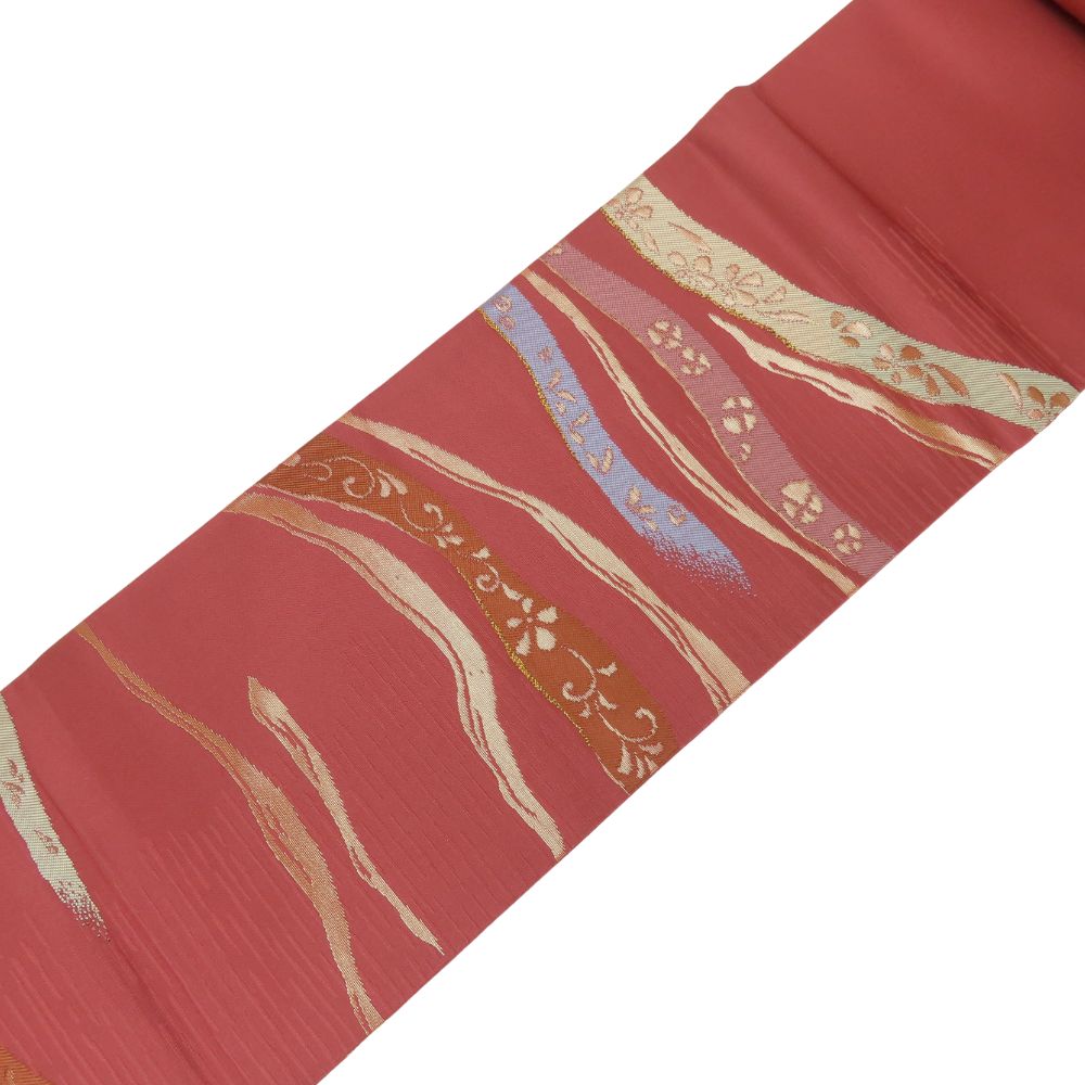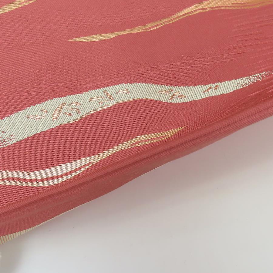 品名【中古】 名古屋帯 九寸 正絹(金銀糸除く) えんじ系 ピンク系 ゴールド マルチカラー 名古屋仕立て 六通柄 モダン レディース 女性