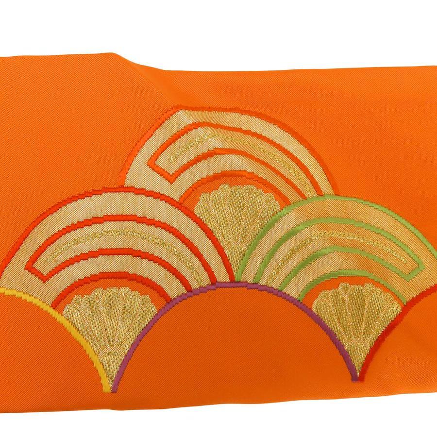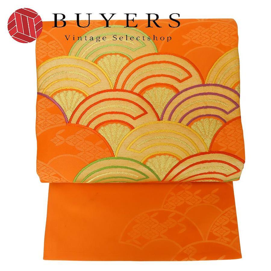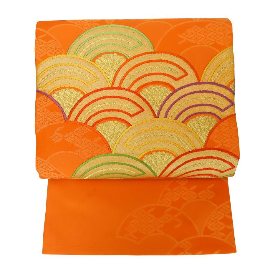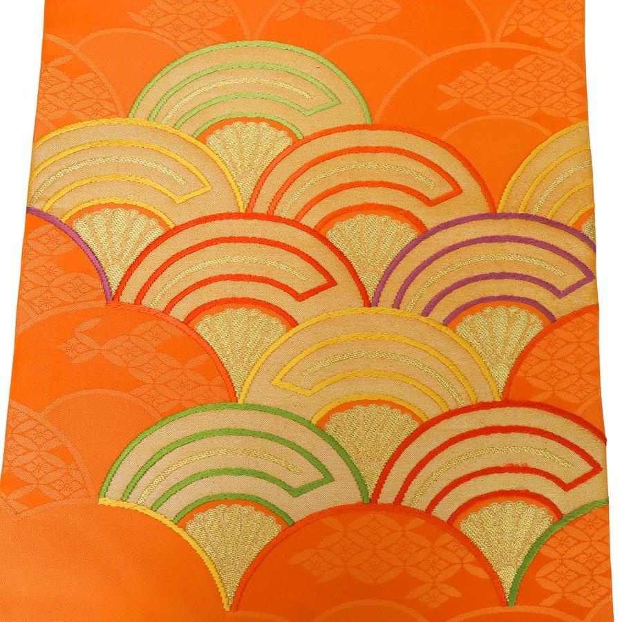 | 品名 | 【中古】 名古屋帯 九寸 正絹(金銀糸除く) オレンジ ゴールド マルチカラー 名古屋仕立て 菊青海波模様 古典 レディース 女性 |