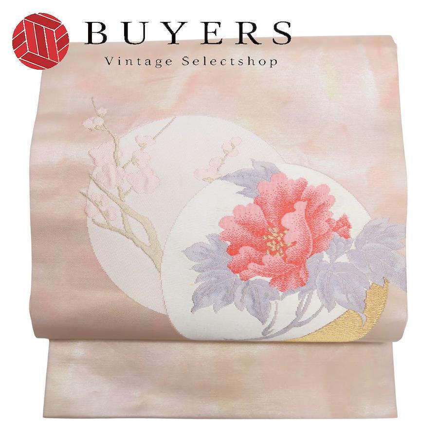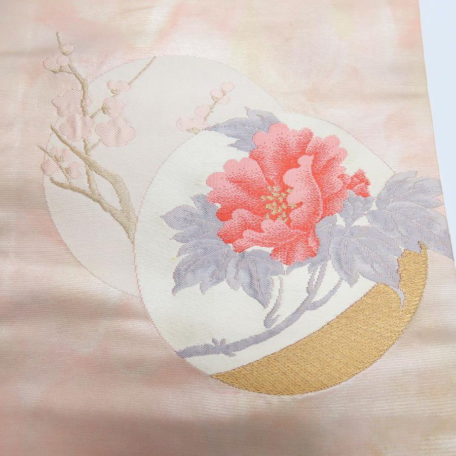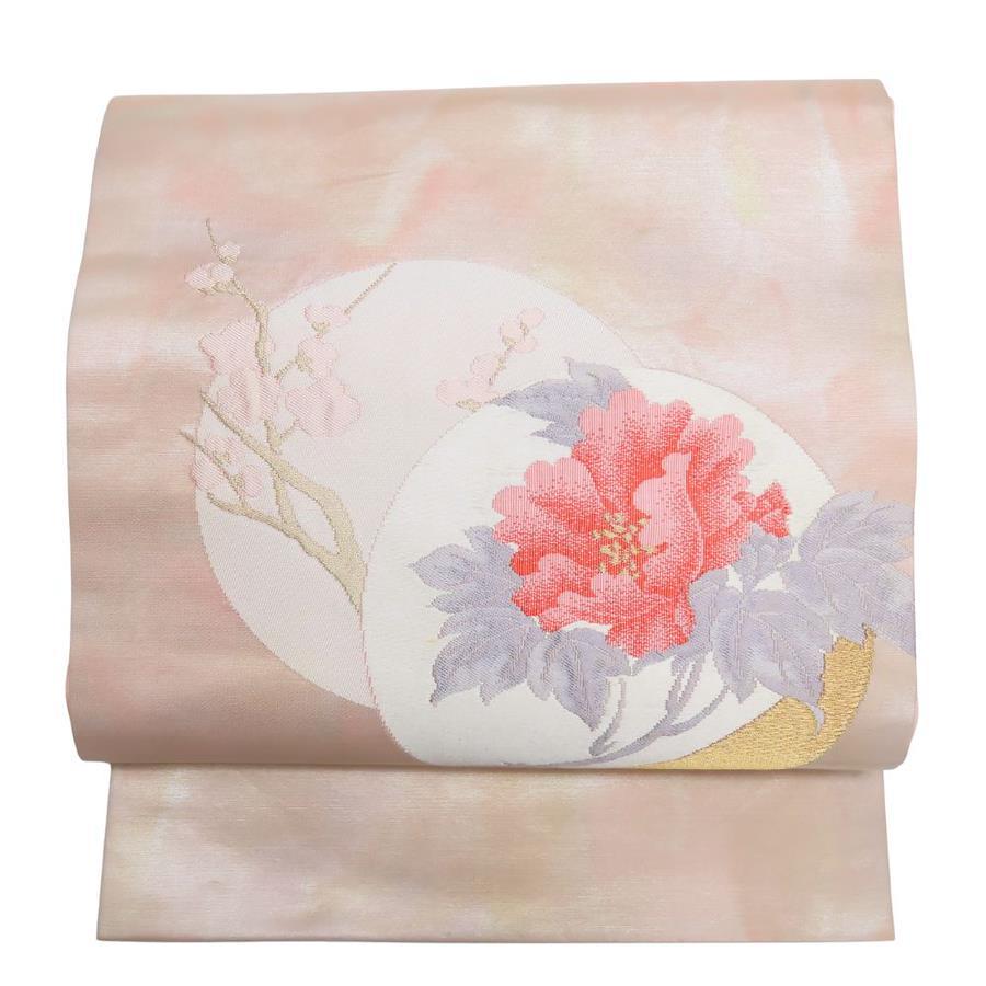 | 品名 | 【中古】 名古屋帯 九寸 正絹(金銀糸除く) 金糸 ピンク系 ゴールド シルバー 名古屋仕立て レディース 女性 |