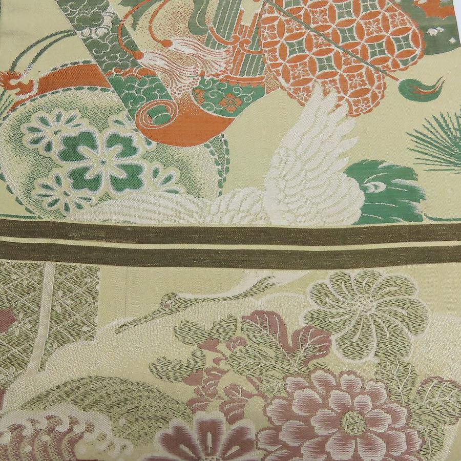 | サイズ | サイズ 全長:約 367cm 幅:約 31.5cm 帯の柄1:吉祥文様尽くし |