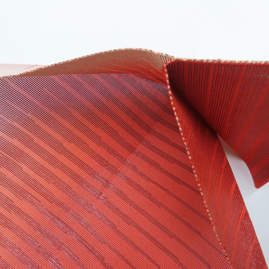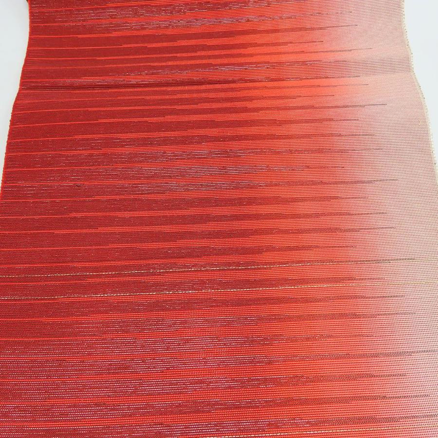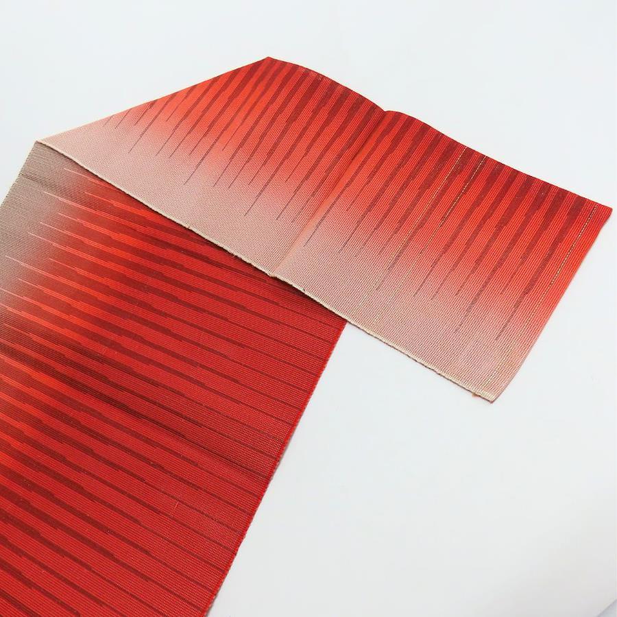| 品名 | 【中古】 名古屋帯 八寸 夏物 正絹(金銀糸除く) レッド系 グラデーション 松葉仕立て 紗 レディース 女性 |