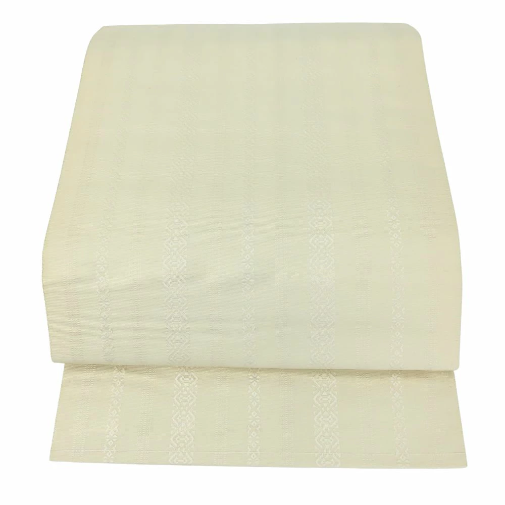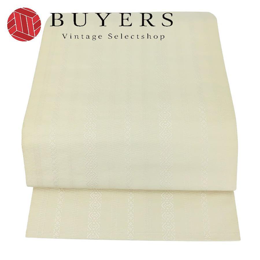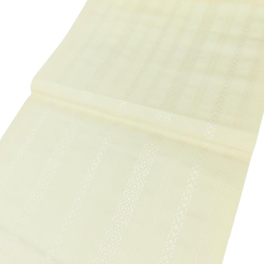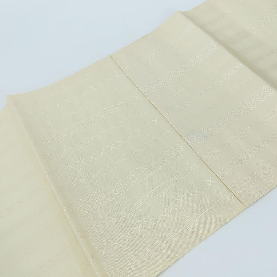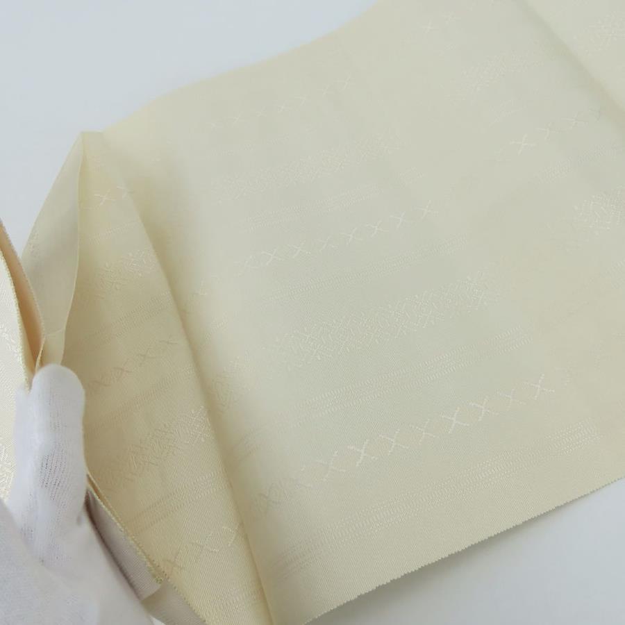 | 品名 | 【中古】 名古屋帯 八寸 正絹(金銀糸除く) アイボリー系 松葉仕立て 献上柄 モダン レディース 女性 |