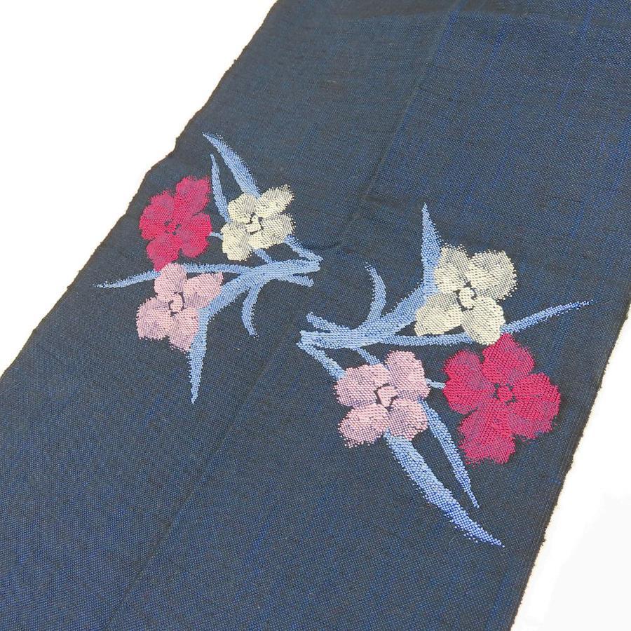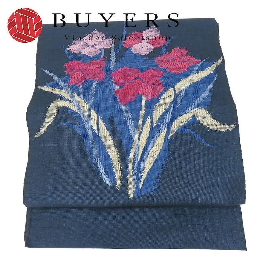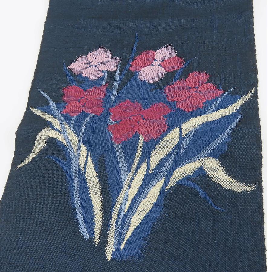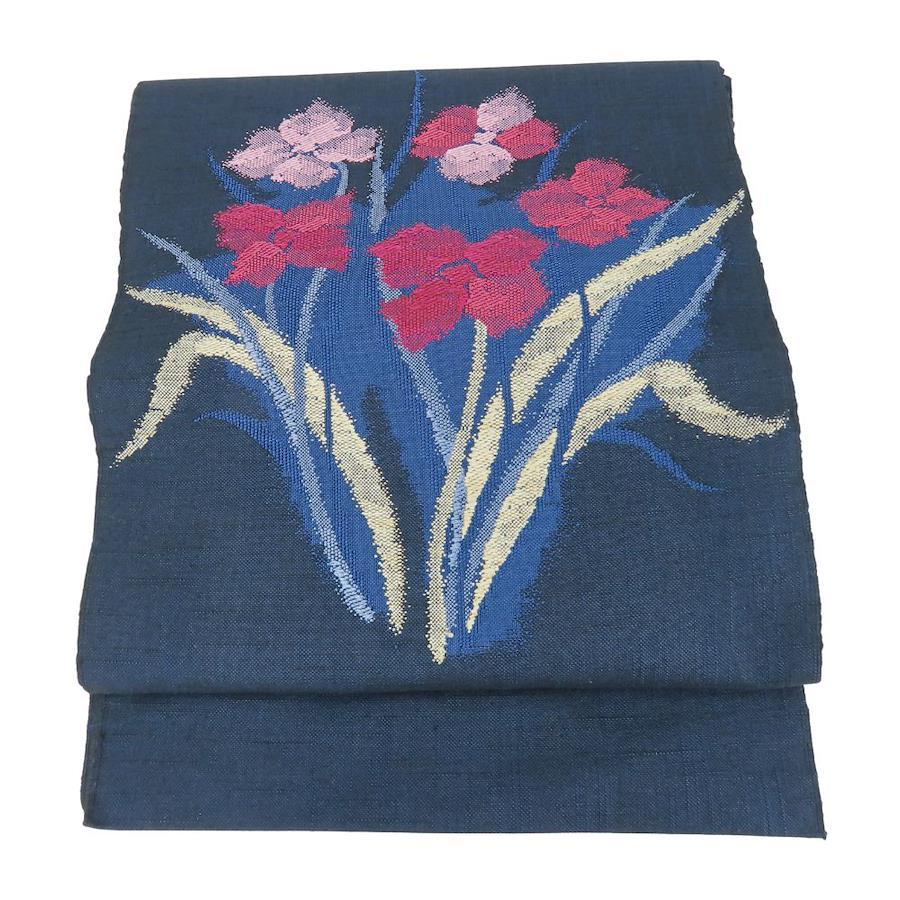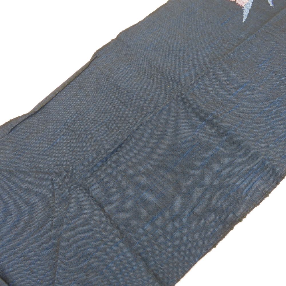 | 品名 | 【中古】 名古屋帯 八寸 正絹(金銀糸除く) ネイビー ピンク系 洒落帯 モダン カジュアル レディース 女性 |