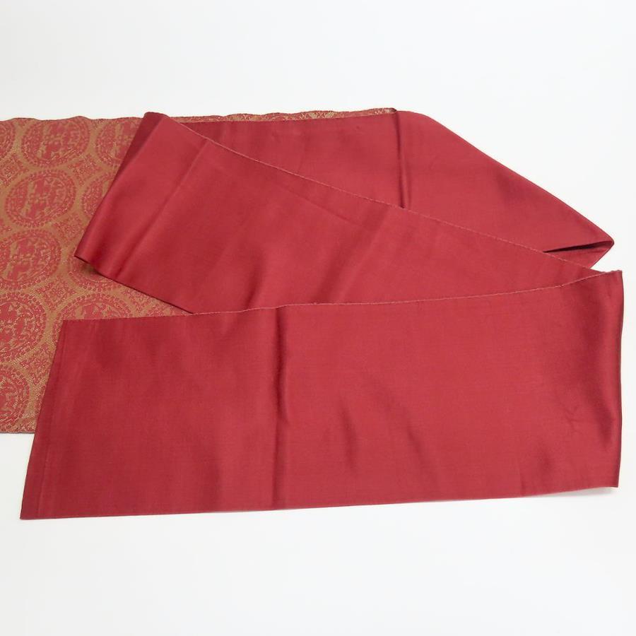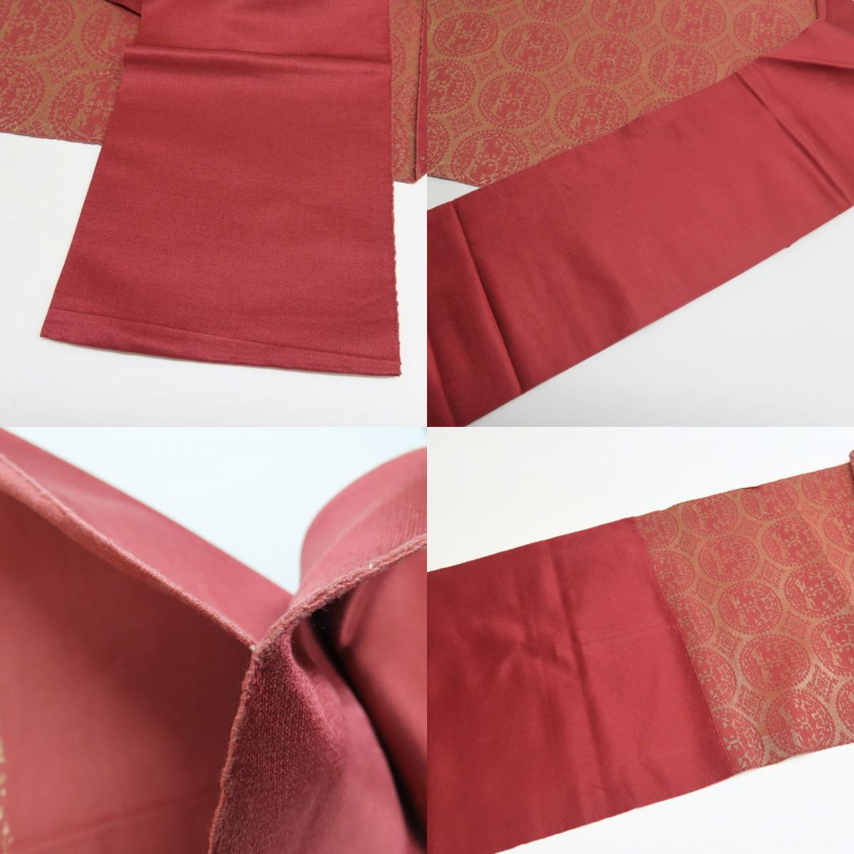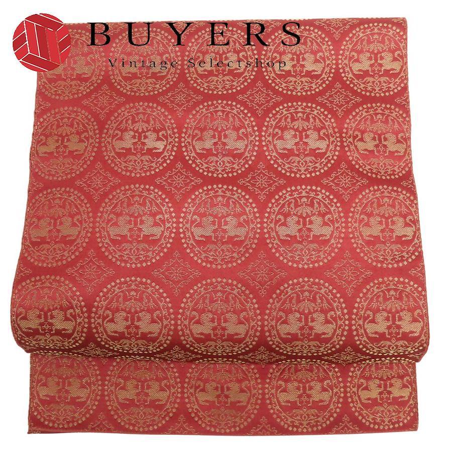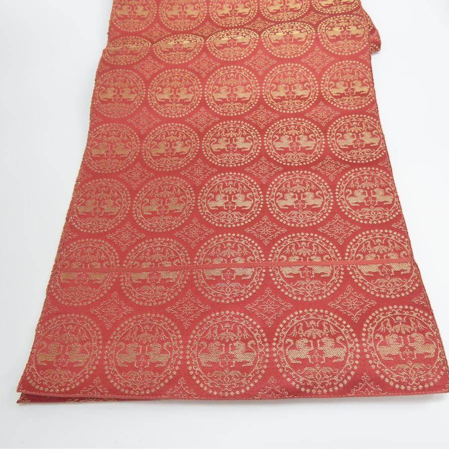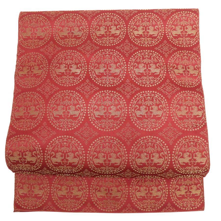 | 品名 | 【中古】 名古屋帯 八寸 正絹(金銀糸除く) ピンク系 えんじ系 ゴールド 名古屋仕立て 六通柄 丸紋 レディース 女性 |