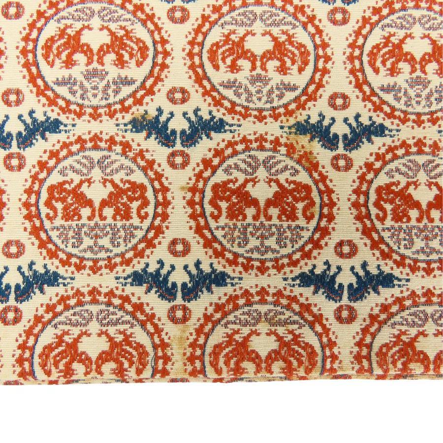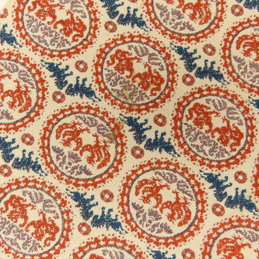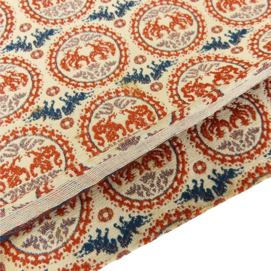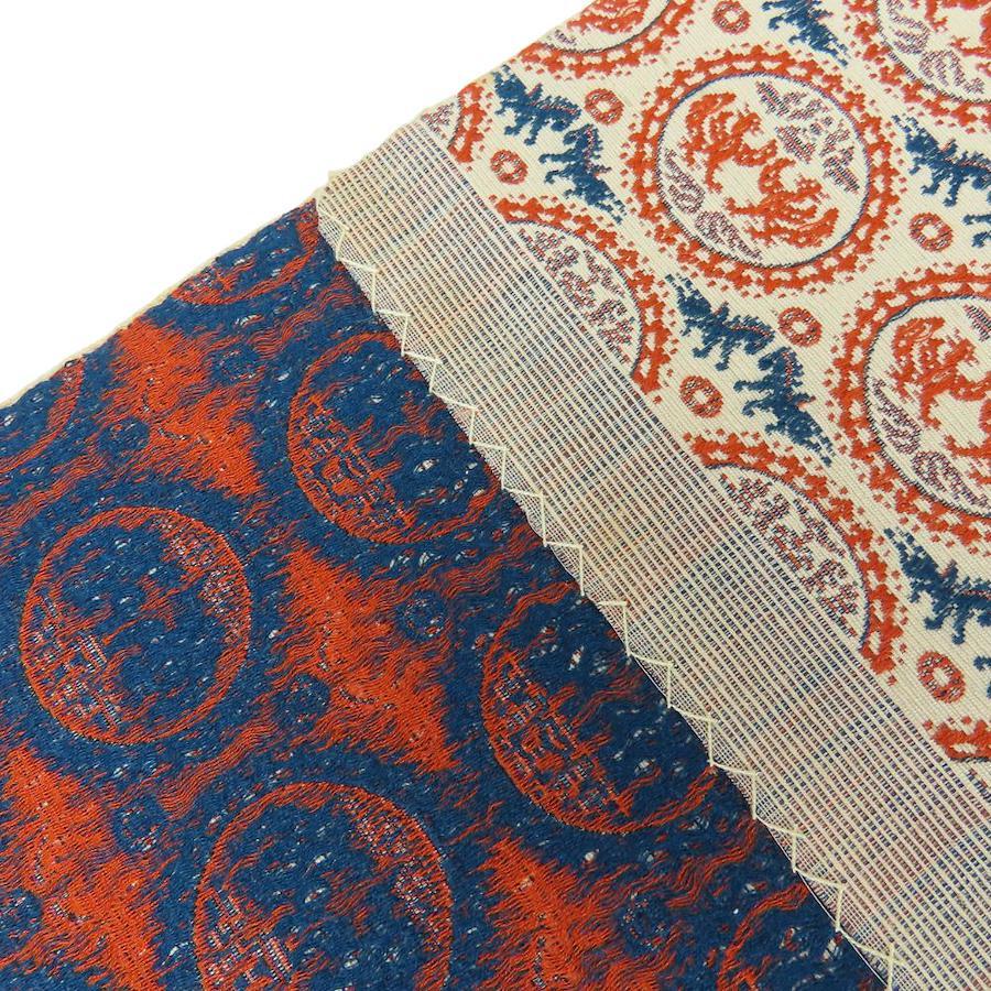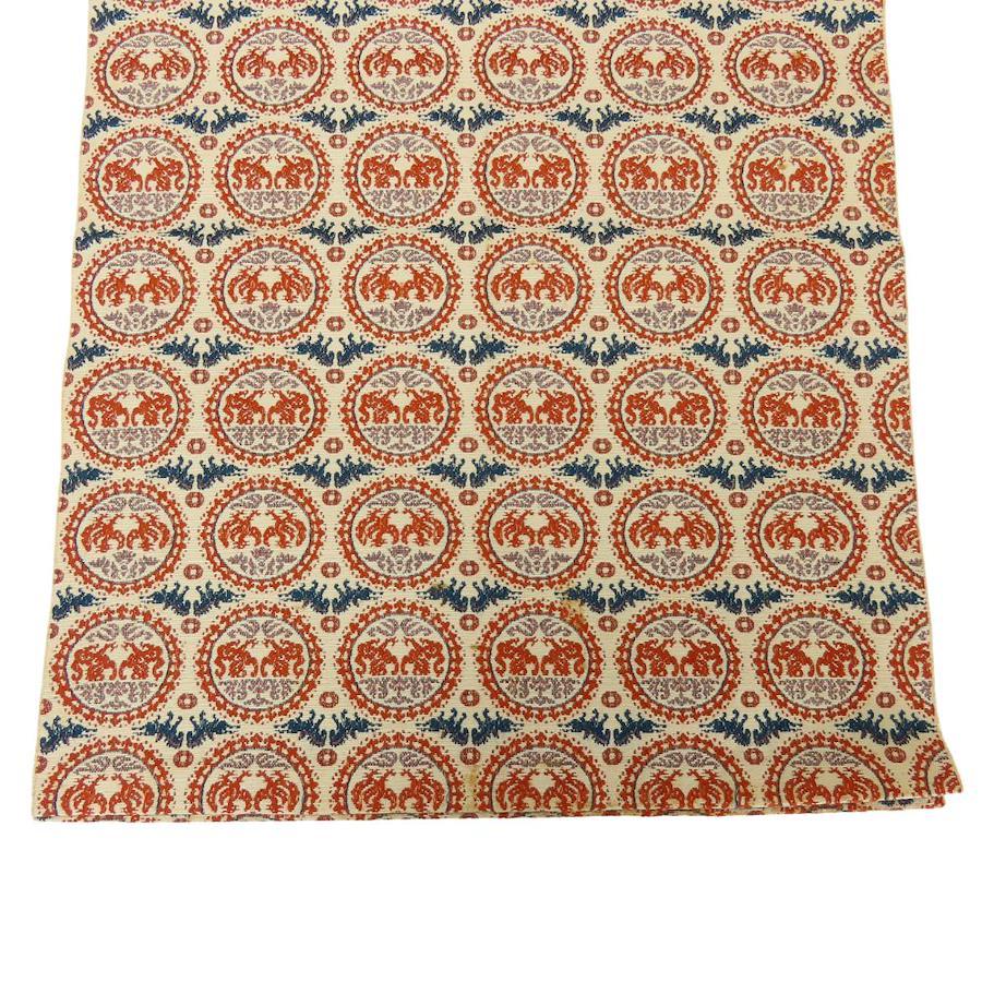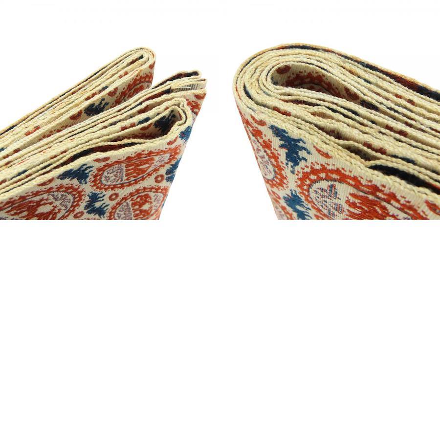 | 品名 | 【中古】 名古屋帯 八寸 正絹(金銀糸除く) ベージュ オレンジ系 ネイビー系 正倉院文様 モダン レディース 女性 |
