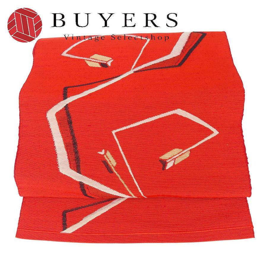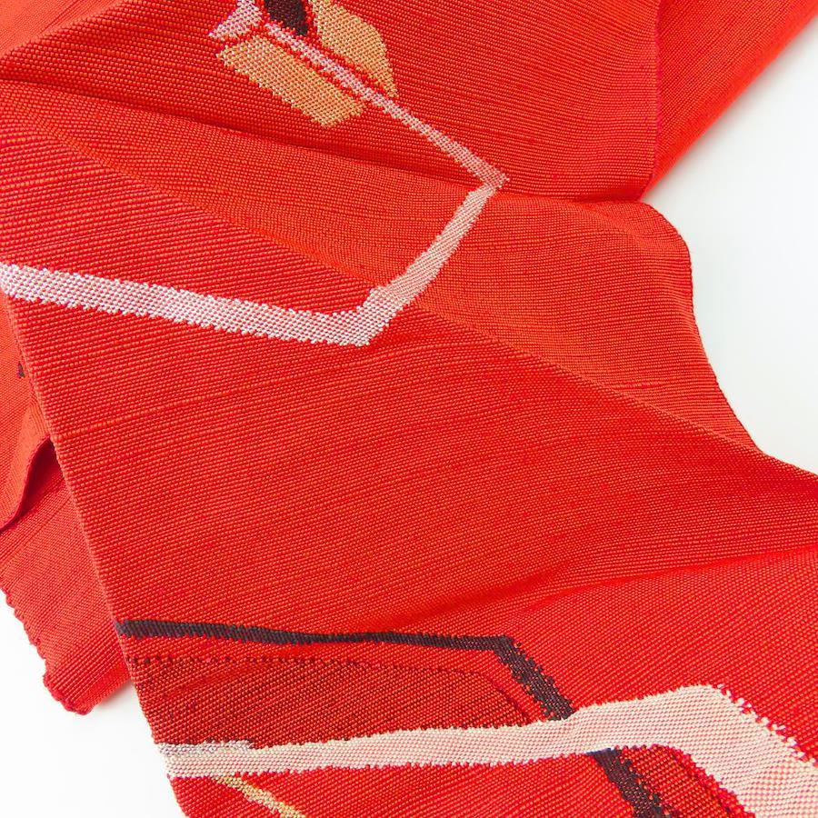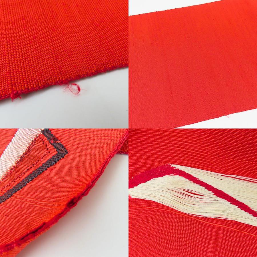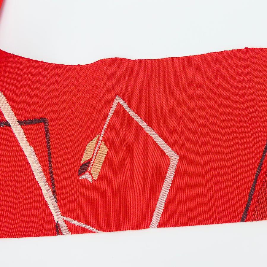 | 品名 | 【中古】 名古屋帯 八寸 正絹(金銀糸除く) レッド 名古屋仕立て モダン お洒落 レディース 女性 |