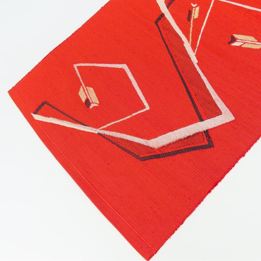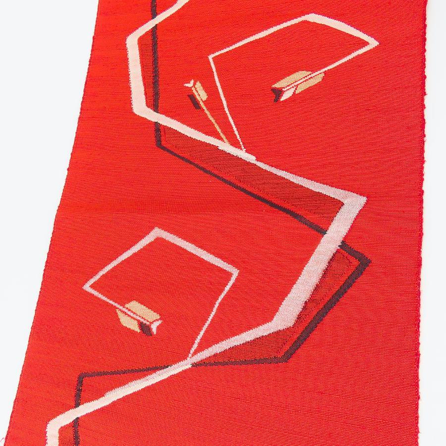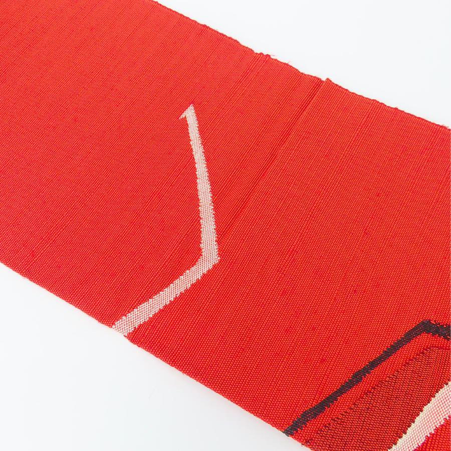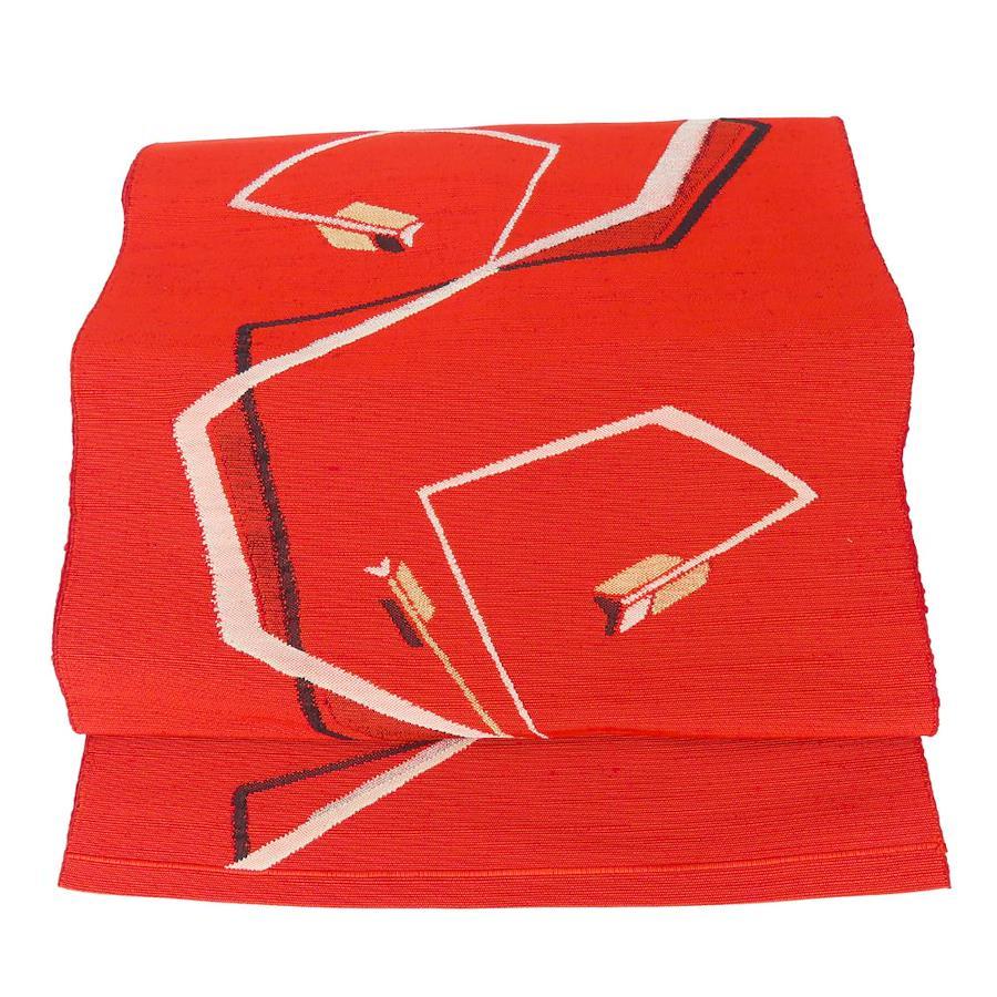 | 品名 | 【中古】 名古屋帯 八寸 正絹(金銀糸除く) レッド 名古屋仕立て モダン お洒落 レディース 女性 |