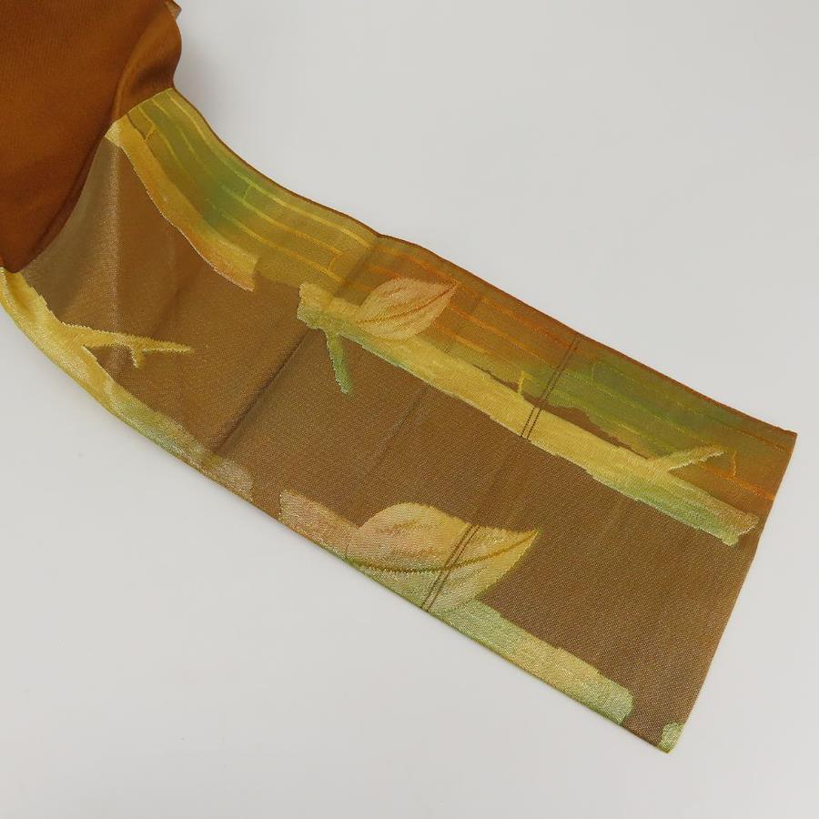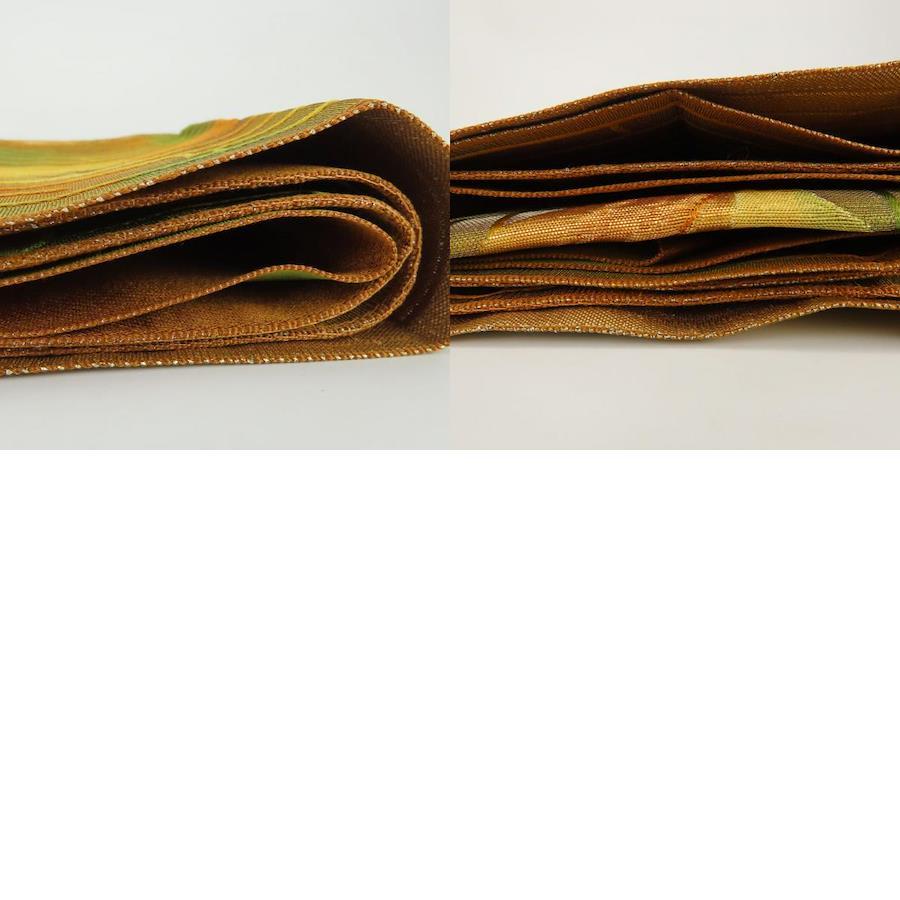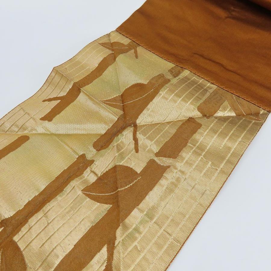 | 品名 | 【中古】 名古屋帯 八寸 正絹(金銀糸除く) 金糸 ブラウン系 ゴールド マルチカラー 松葉仕立て 洒落帯 モダン レディース 女性 |
