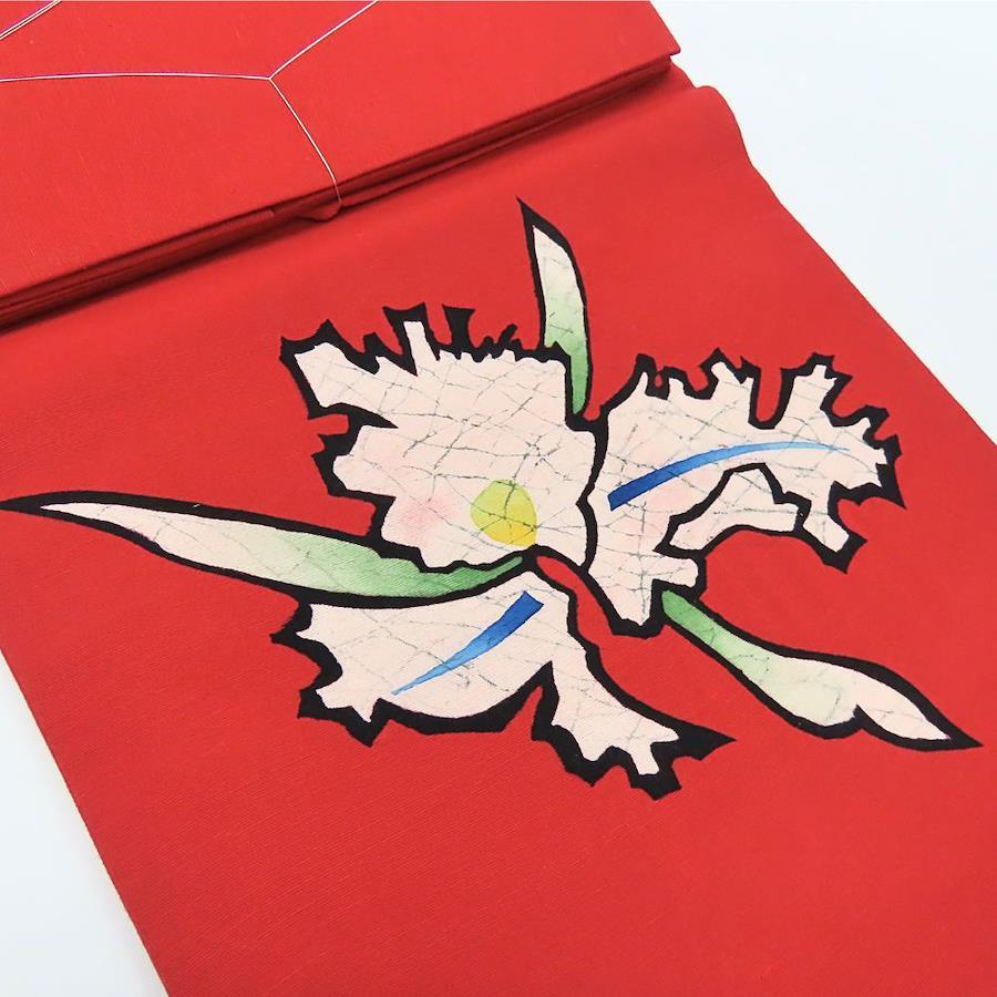 | 品名 | 【中古】 名古屋帯 名古屋仕立て 正絹(金銀糸除く) レッド系 マルチカラー 落款あり 洒落帯 レトロ レディース 女性 |