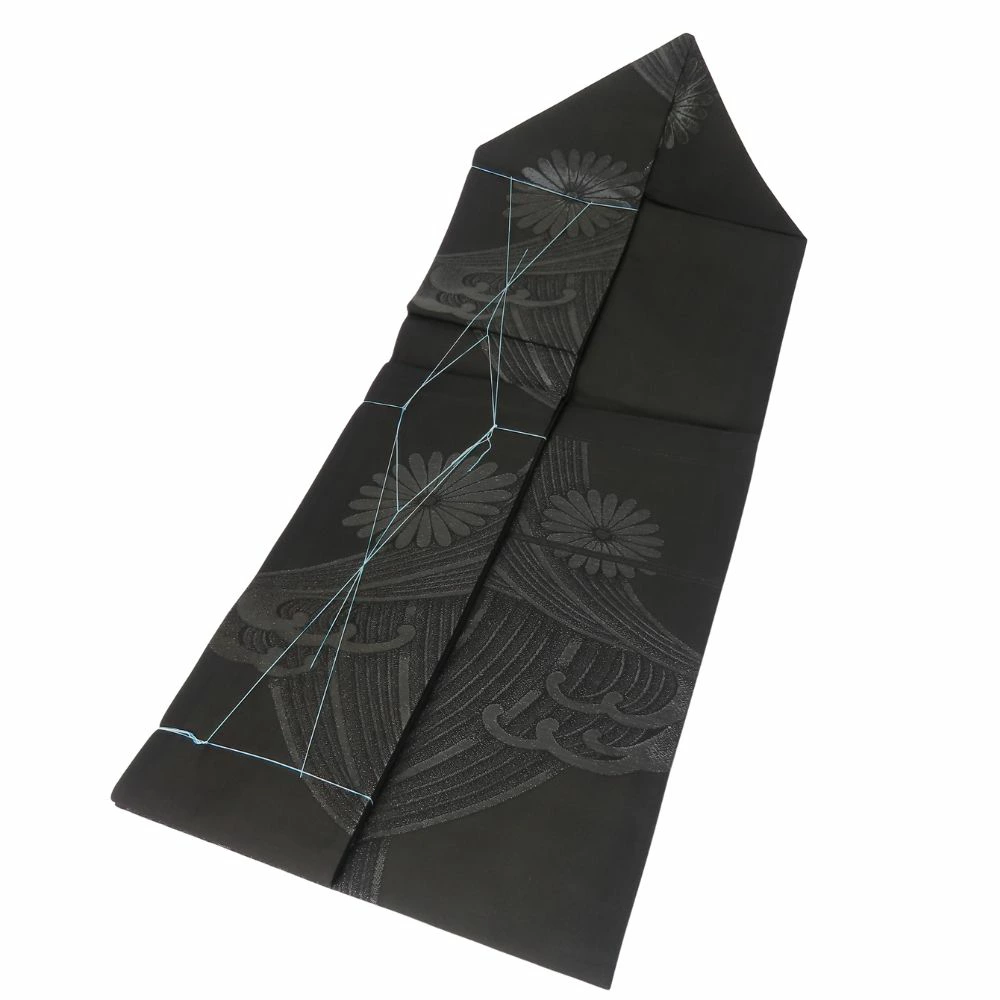 | 品名 | 【中古】 名古屋帯 喪服用 九寸 化学繊維 ブラック 名古屋仕立て しつけ糸あり 波に菊 レディース 女性 |