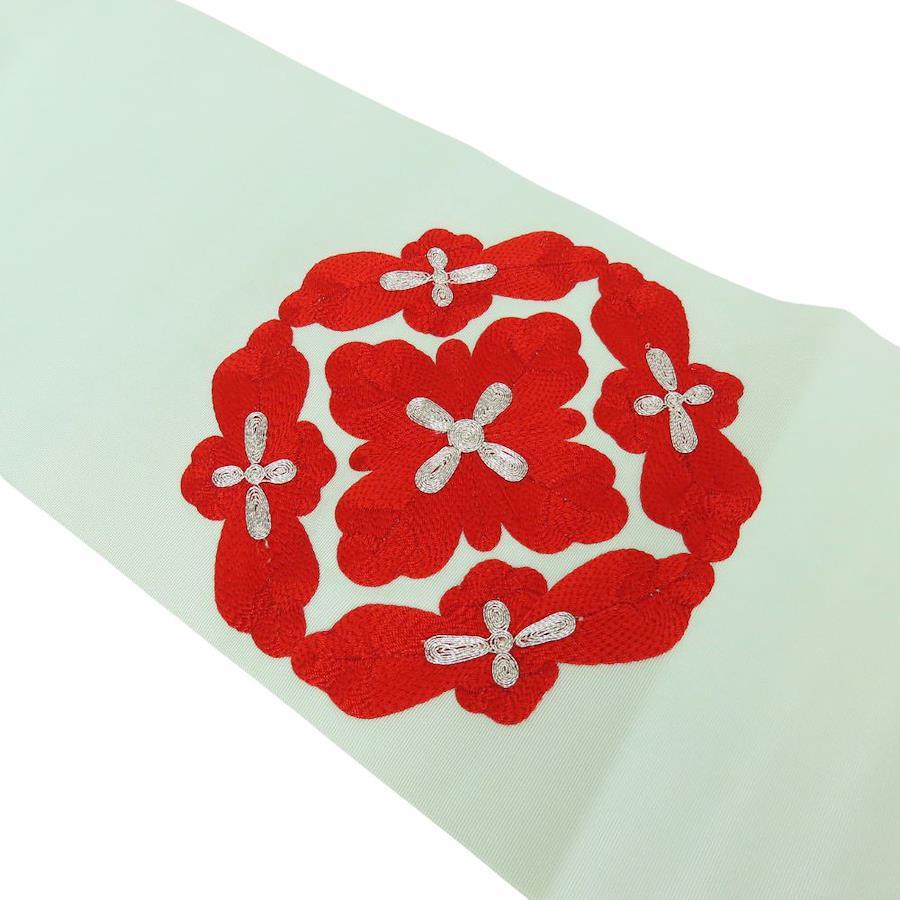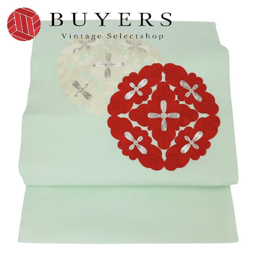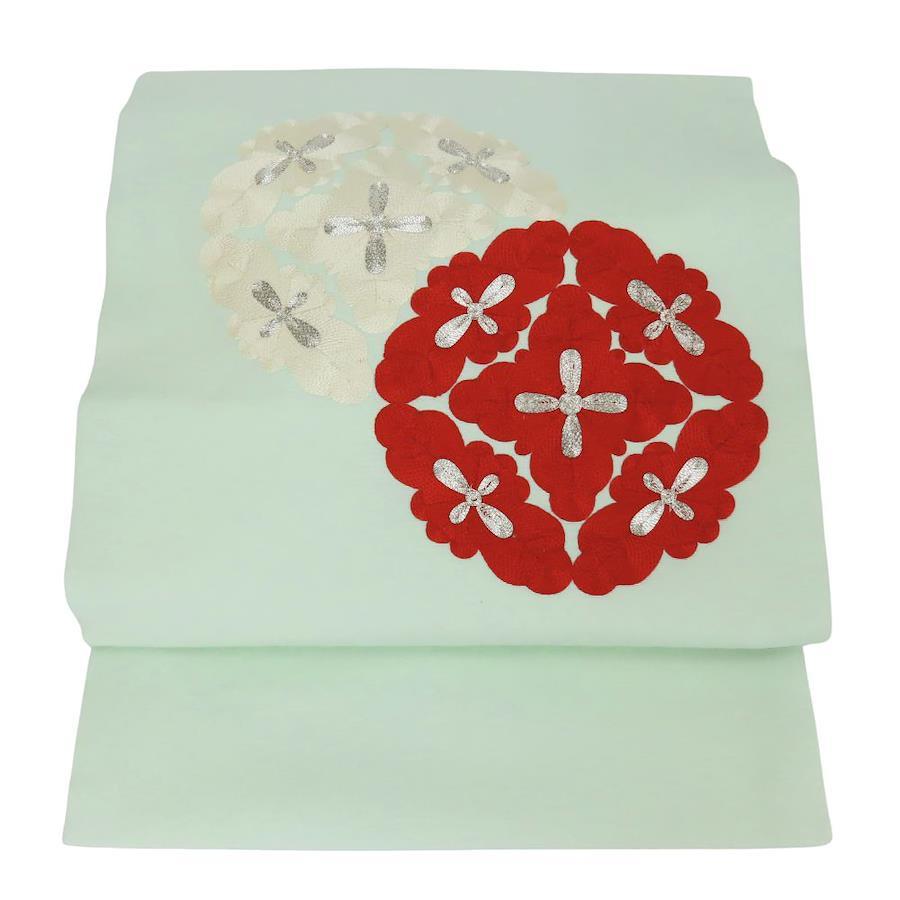 | 品名 | 【中古】 名古屋帯 塩瀬 九寸 正絹(金銀糸除く) 銀糸 ライトグリーン ホワイト レッド シルバー 名古屋仕立て お太鼓柄 刺繍 レディース 女性 |