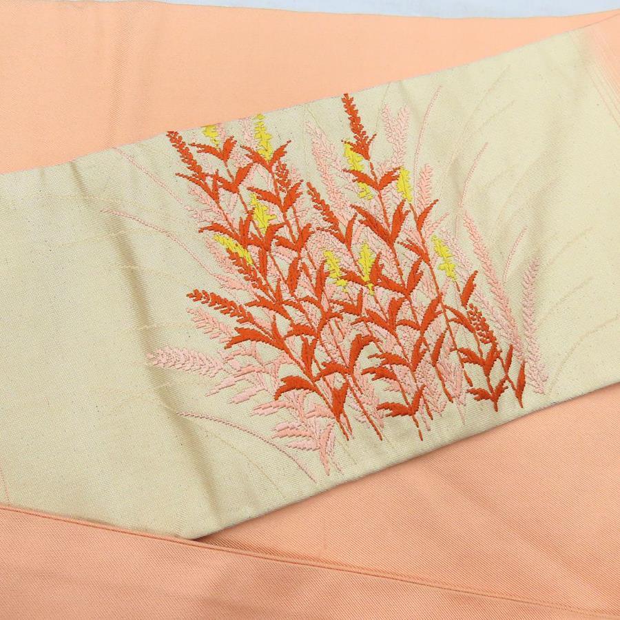 | 品名 | 【中古】 名古屋帯 正絹(金銀糸除く) シャンパンゴールド オレンジ サーモンピンク 名古屋仕立て 秋 レディース 女性 |