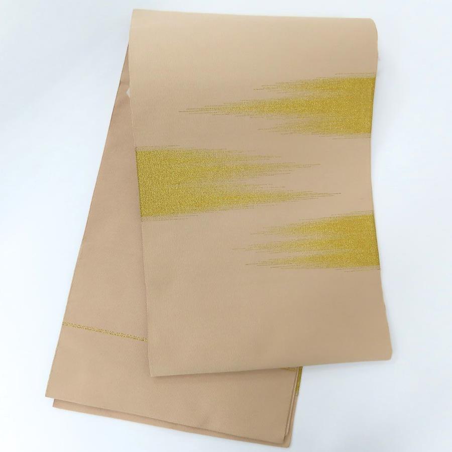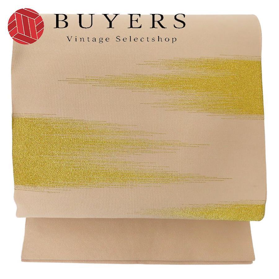 【中古】 名古屋帯 正絹(金銀糸除く) ピンクベージュ系 くすみカラー ゴールド かがり仕立て 和装 呉服 和服 きもの レディース 女性