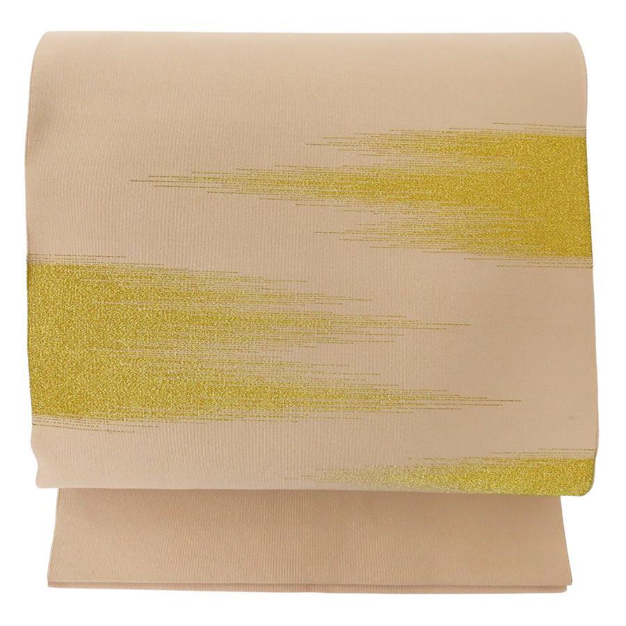 品名【中古】 名古屋帯 正絹(金銀糸除く) ピンクベージュ系 くすみカラー ゴールド かがり仕立て レディース 女性