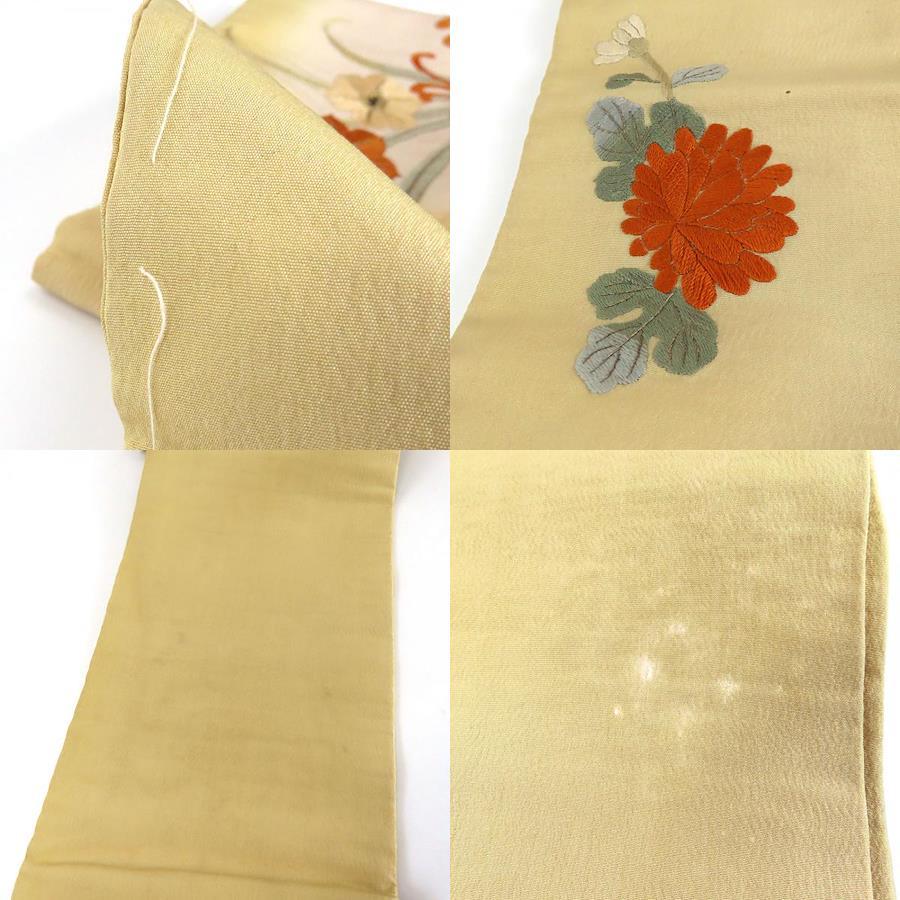 【中古】 名古屋帯 正絹(金銀糸除く) ベージュ系 黄土色系 金 橙 名古屋仕立て 和装 呉服 和服 きもの レディース 女性