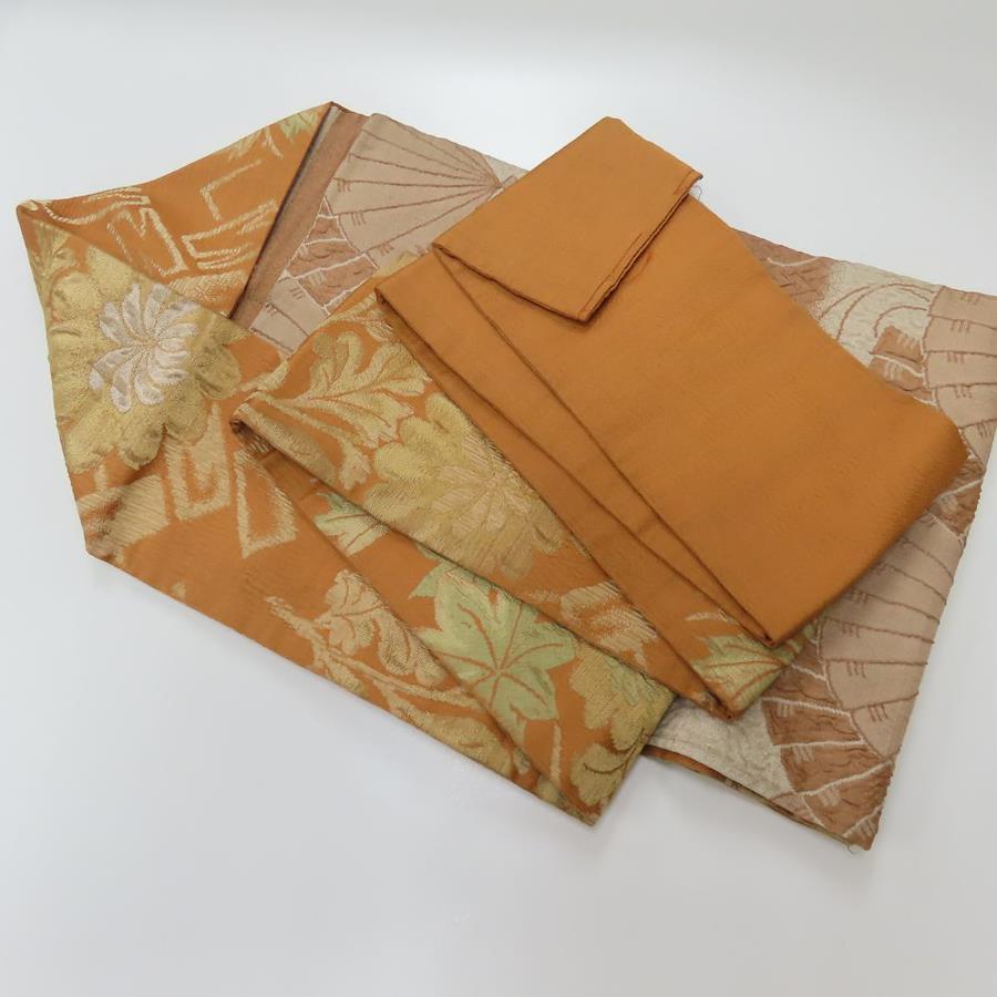 | サイズ | サイズ 全長:約 338cm 幅:約 29.5cm 帯の柄1:草花 帯の柄2:扇子 重量:約620g |