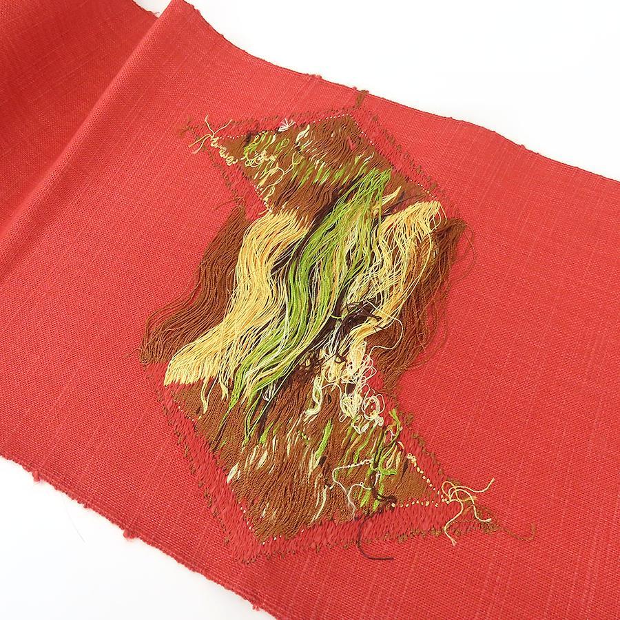 | サイズ | サイズ 全長:約 367cm 幅:約 30cm 帯の柄1:幾何学模様 重量:約660g |