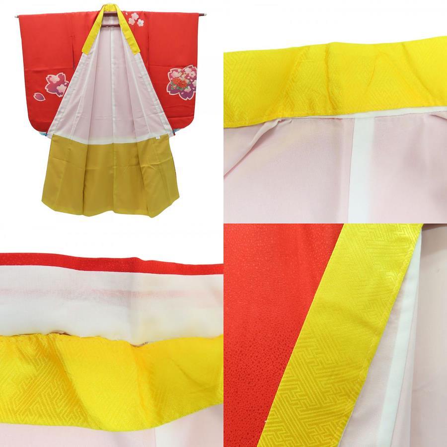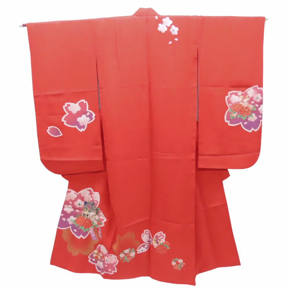 | 品名 | 【中古】 子供着物 祝い着 合成繊維 レッド 7歳用 七五三 重ね襟つき |