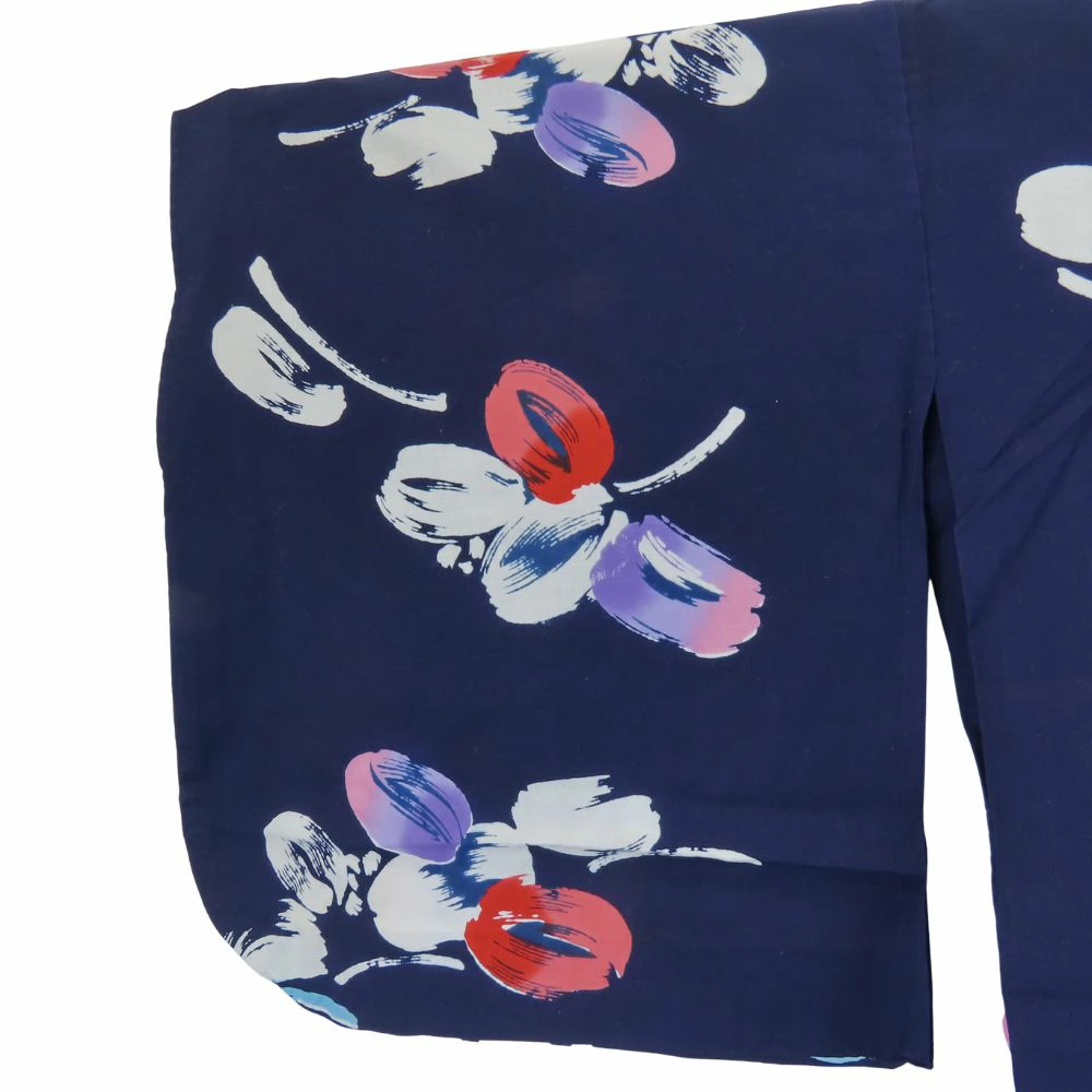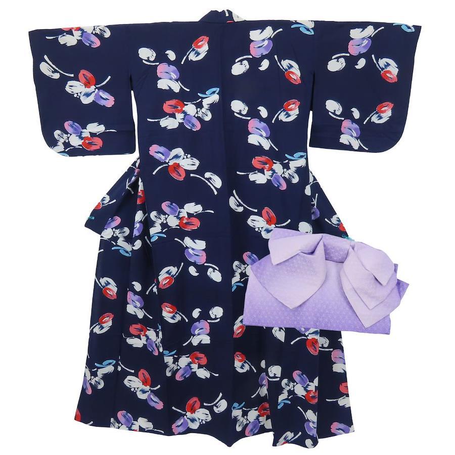 | 品名 | 【中古】 浴衣 セット 作り帯 綿 ポリエステル ネイビー パープル 注染ゆかた かわいい レディース 女性 |