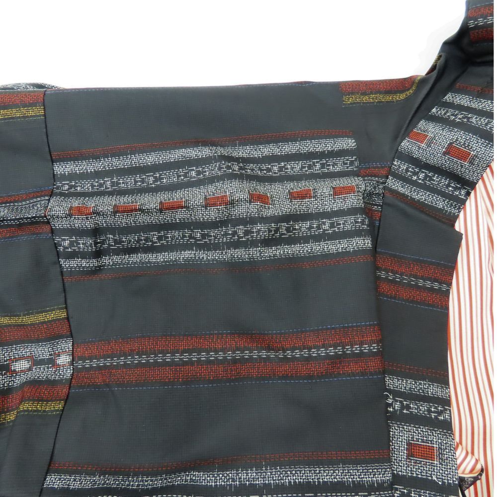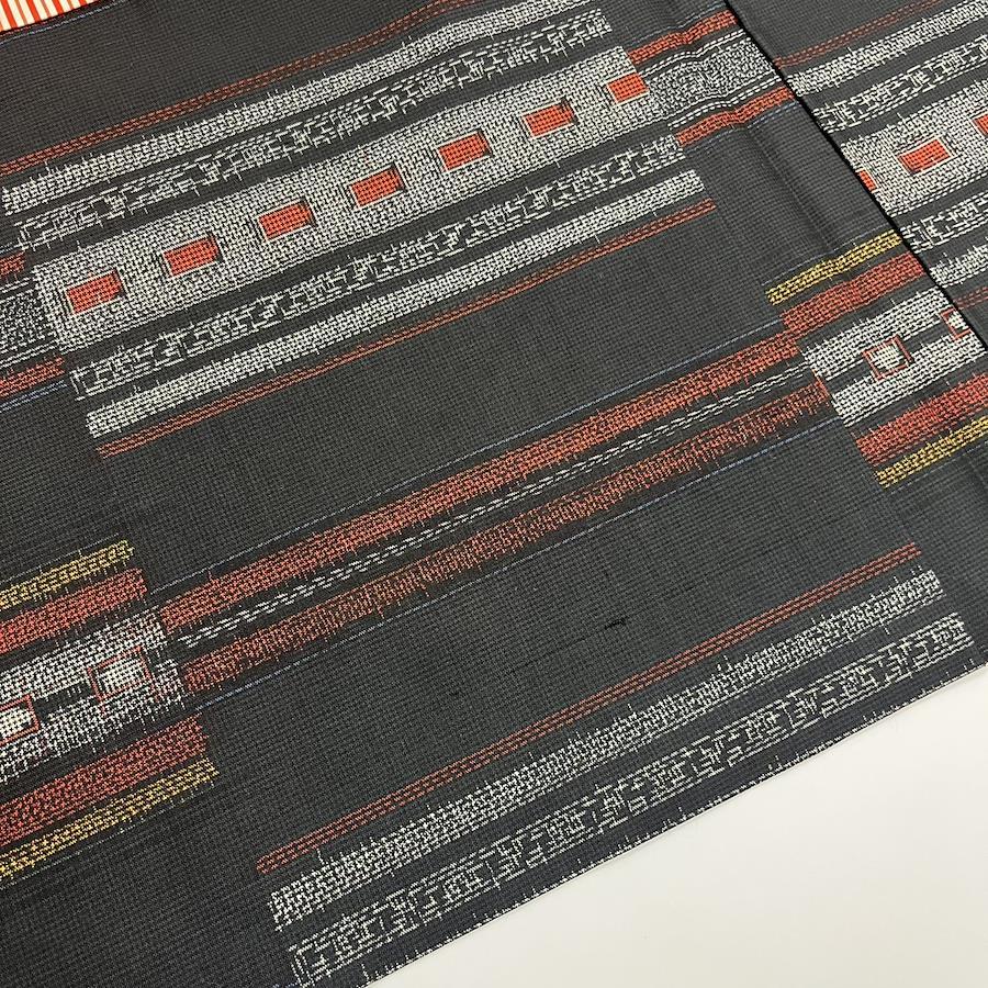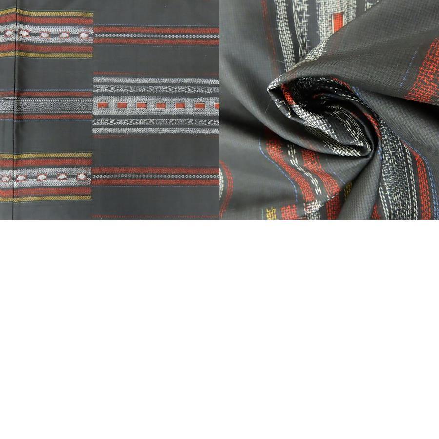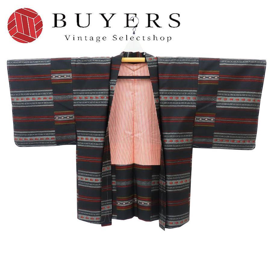 【中古】 羽織 村山大島 正絹 ブラック グレー えんじ しつけ糸あり お洒落 モダン 和装 呉服 和服 きもの レディース 女性