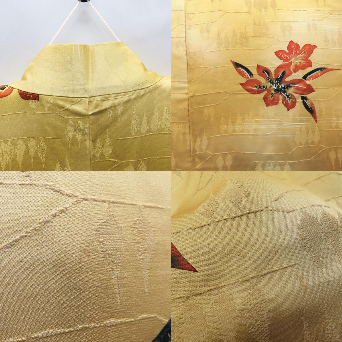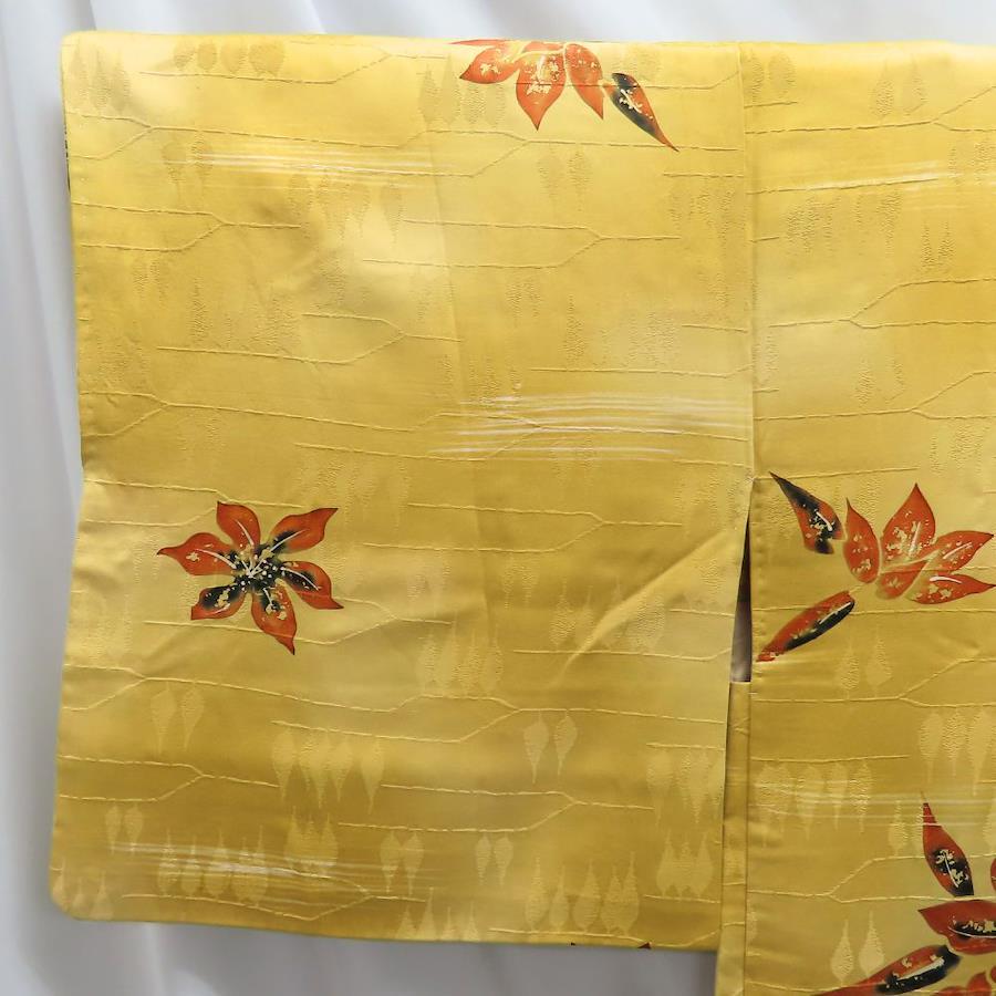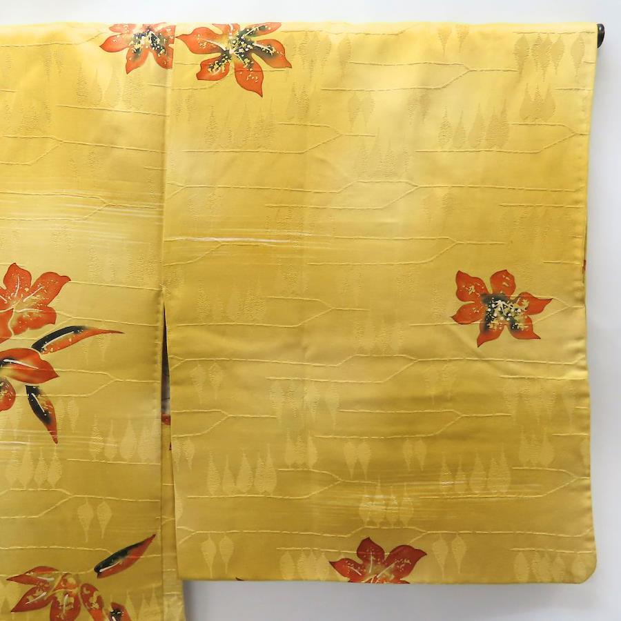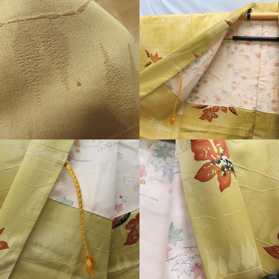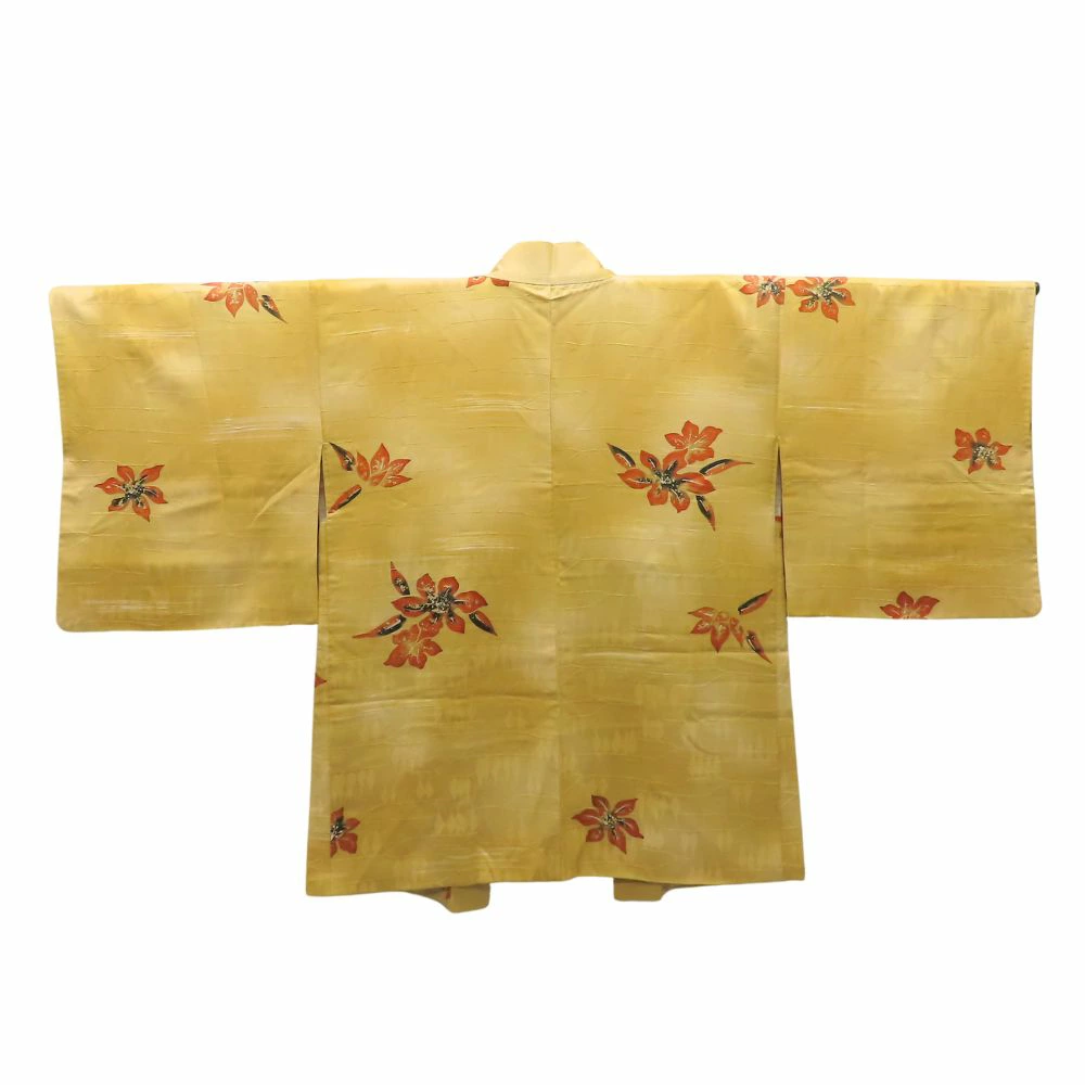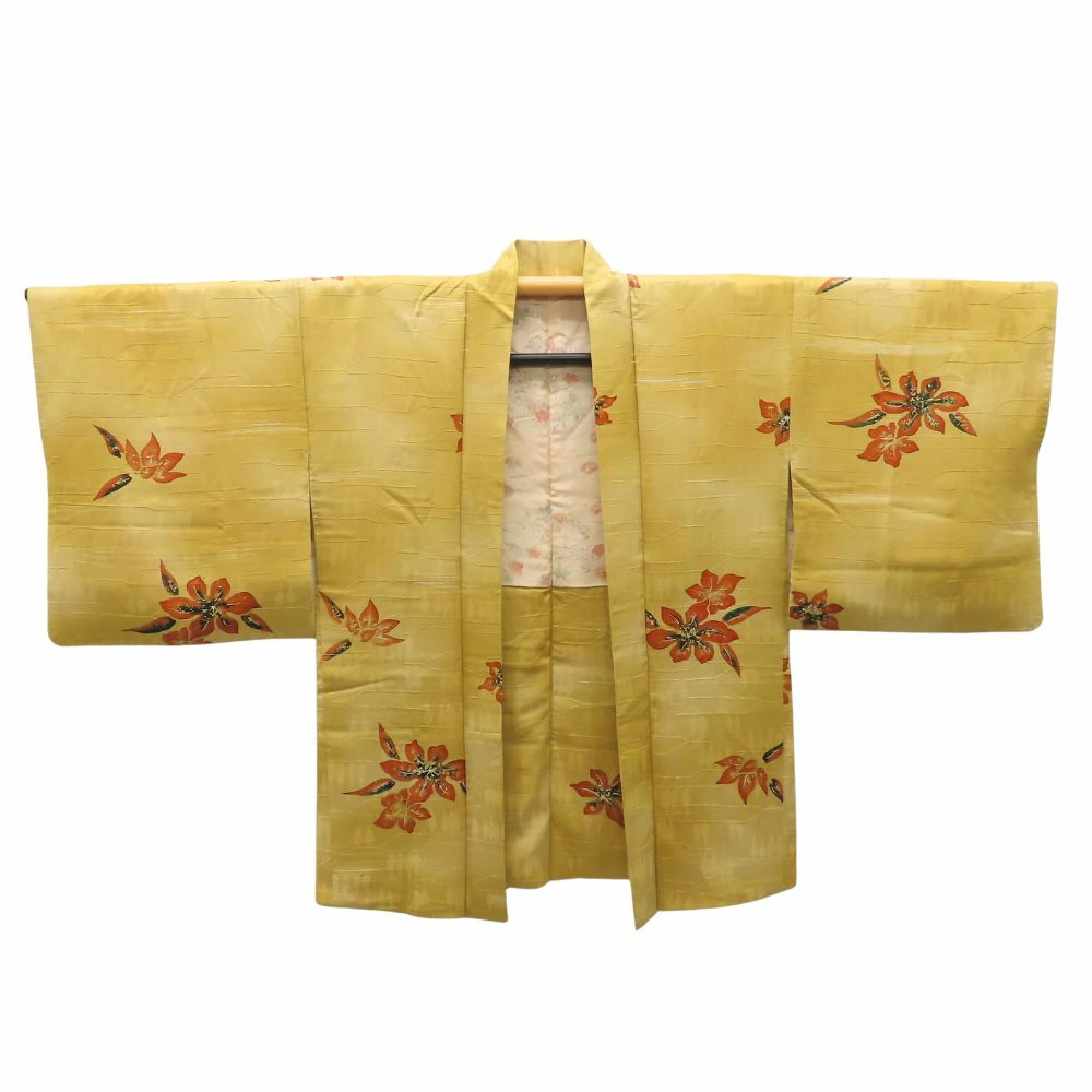 品名【中古】 羽織 正絹(金銀糸除く) からし色 橙 裏地あり 秋の草花 洒落 レディース 女性