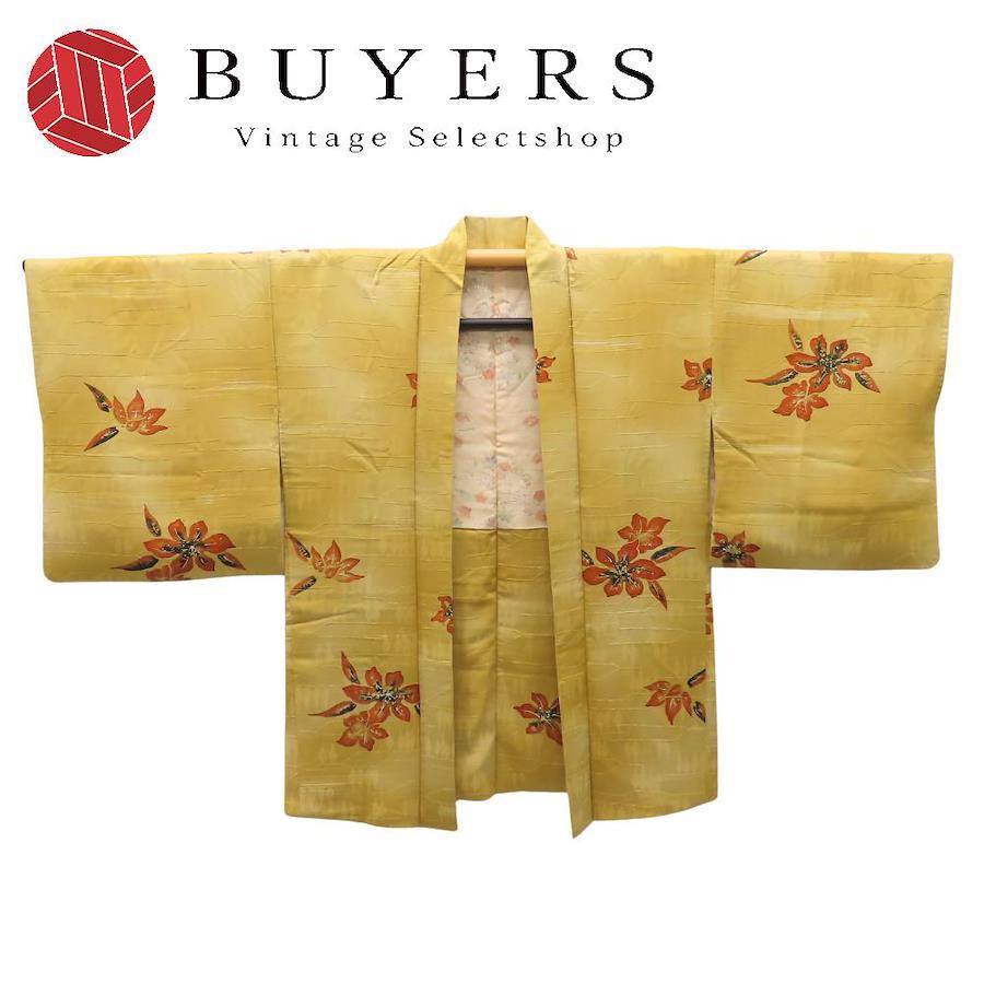 【中古】 羽織 正絹(金銀糸除く) からし色 橙 裏地あり 秋の草花 洒落 和装 呉服 和服 きもの レディース 女性